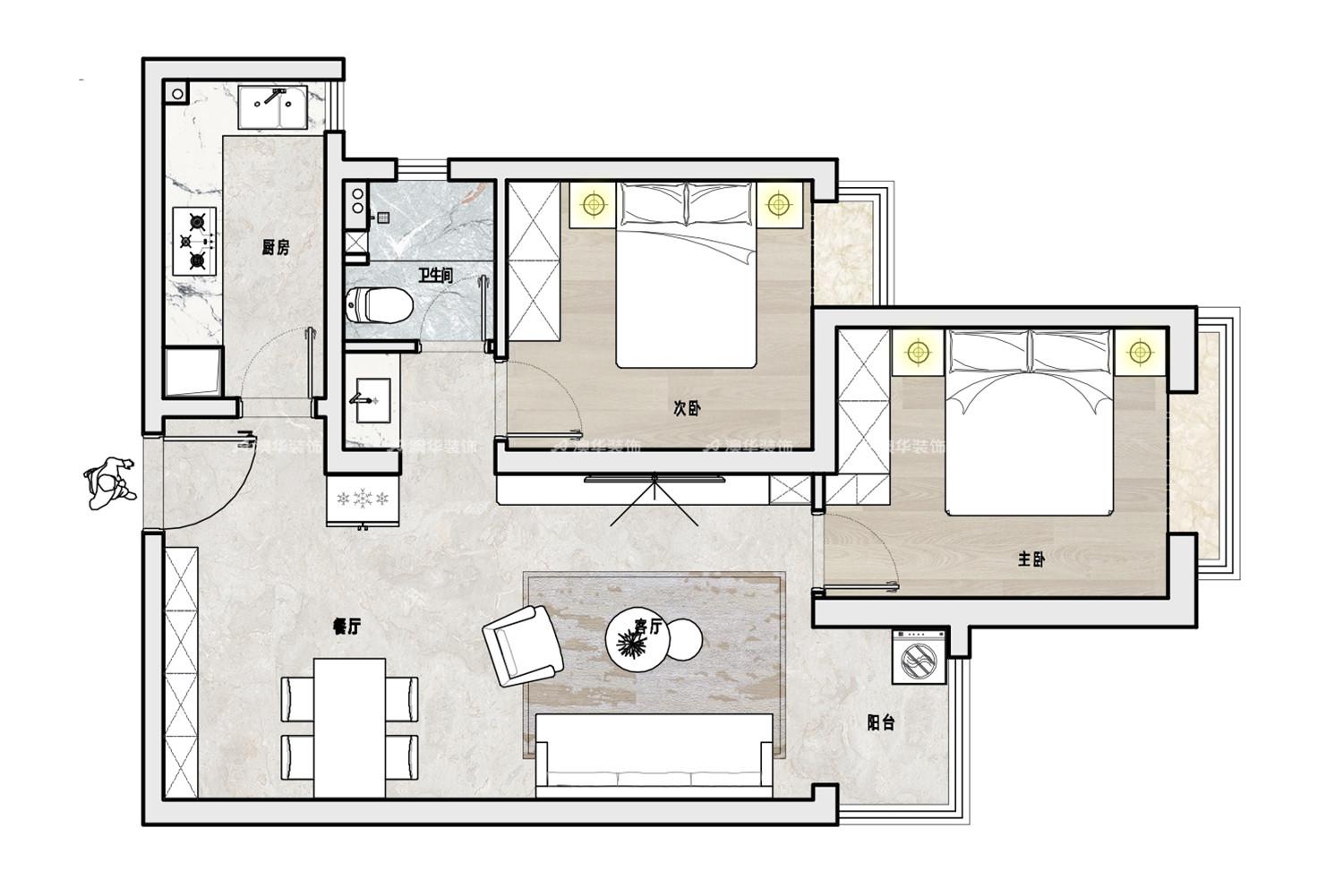 1、入户打造玄关落尘区,借用次卧空间增设一组鞋柜