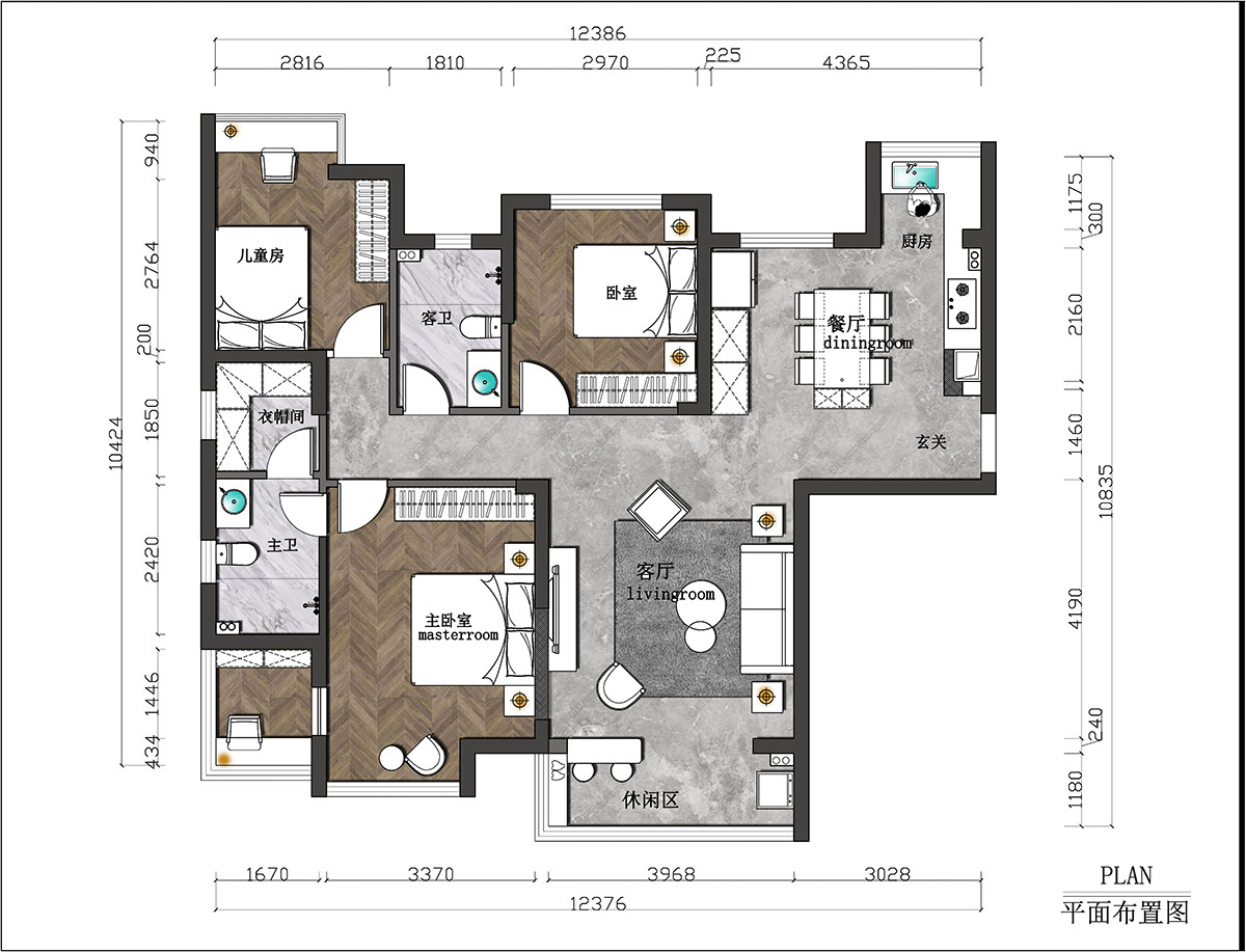原户型餐厨空间较小,厨房旁小阳台利用率不高,业主希望通过户型改造,增大餐厨空间 6686官方版app,且有做西餐的位置,业主家一儿一女,希望在保持三卧室结构不变的情况下,增加一间书房。