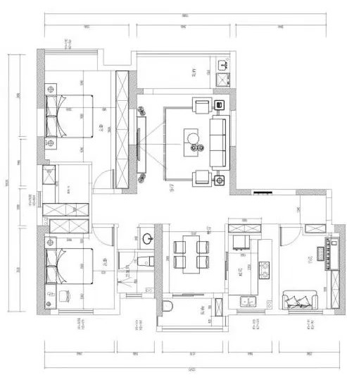 联发九都国际6期这套二居室住宅的面积为123㎡ 6686官方版app,整体的户型结构呈现“L”形,空间犄角少却格局合理,因此设计师的设计重点放在了功能的划分上,根据业主起居使用需求,空间左半部分被划分为休憩空间,中间则被规划为会客区域,左半侧则设计为做饭与就餐空间,整体动静分区合理,在无形之中提升了生活的品质。