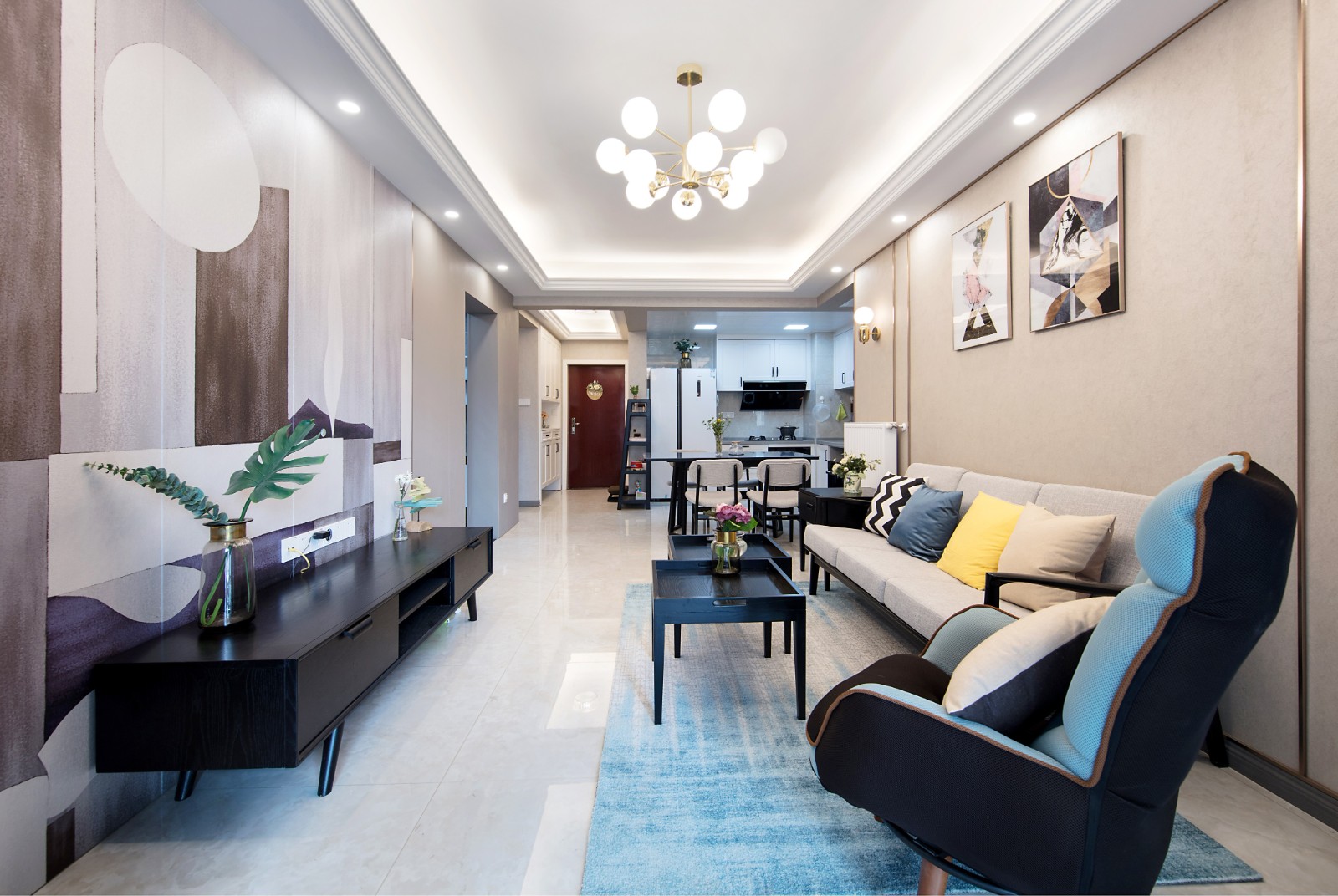 广电兰亭荣荟的这套二居室住宅面积在90㎡左右,原有的户型结构细小角落较多 6686官方版app,加上原本房屋面积不大,因此需要对整体空间进行更加合理高效的利用,设计师在充分考虑业主使用需求的前提下,将次卧旁边的琐碎成一个迷你储物间,有效避免了空间的浪费,而开放式厨房的设计,则有效节省了室内空间的占用。