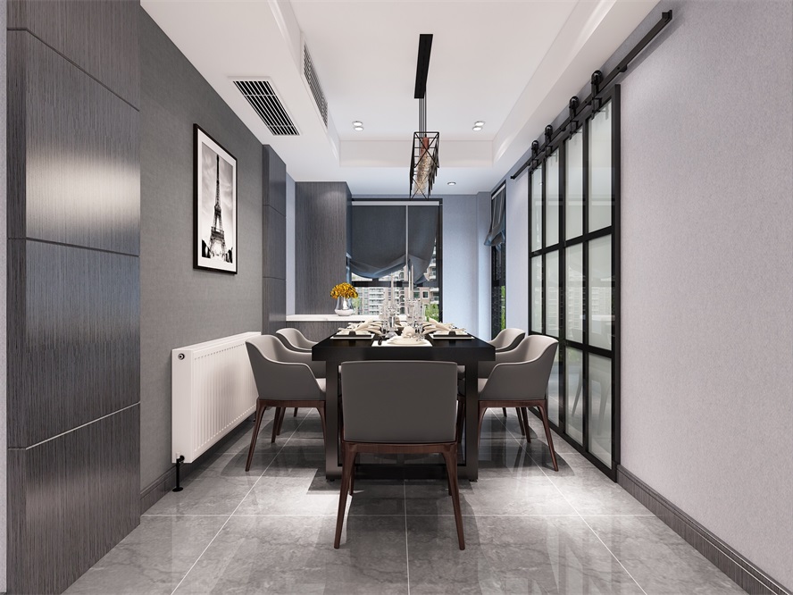 干净的灰色墙面搭配上黑色餐桌 6686官方版app,简单而又不失个性感,同时为空间增添了沉稳气息。