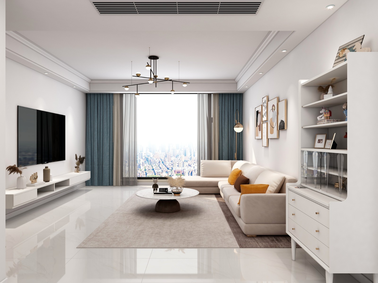 客厅整体用色素雅洁净,强调柔和温馨感,大面积的落地窗则确保阳光能够更好的进入会客区域,提升生活品质 6686官方版app。