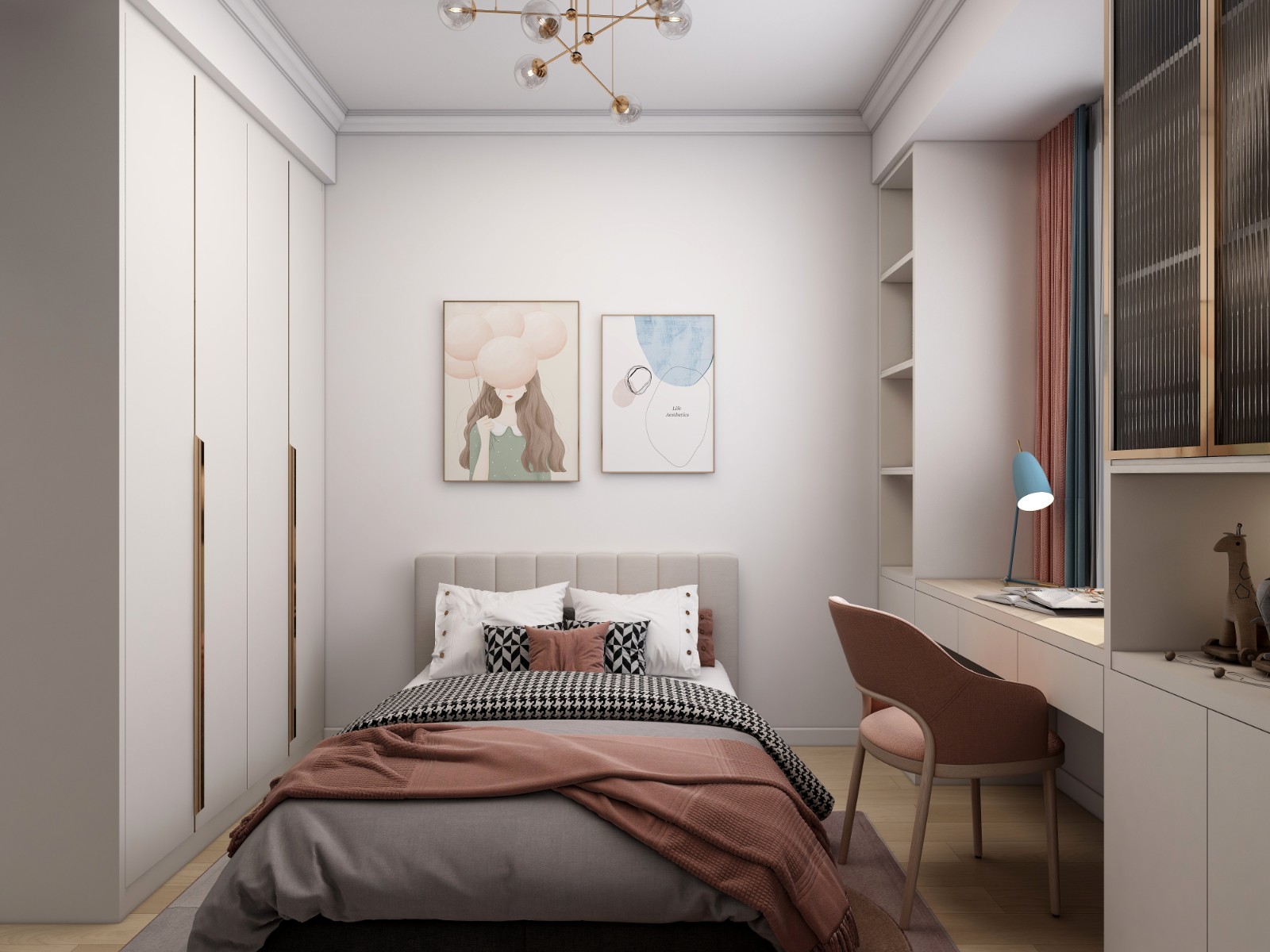 儿童房的设计则从孩子的审美考虑出发,选择了相对比较柔和明快的色彩进行装饰,搭配以童真挂画 6686官方版app,甜美而又温馨。