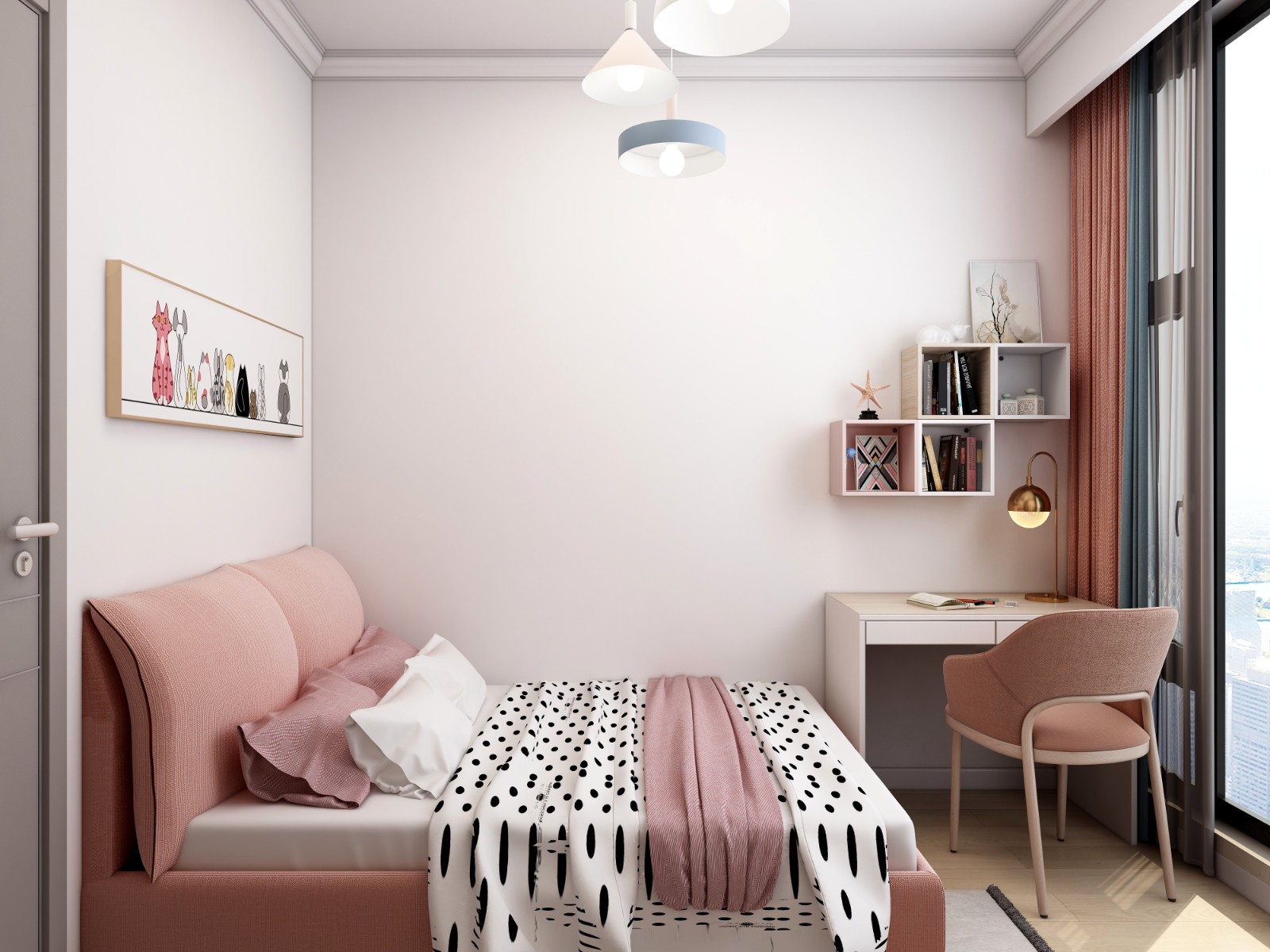 白色墙面搭配上简单挂画,简约而又不过于单调 6686官方版app,蓝色的窗帘为客厅同款,有效保证了各个空间的一致性。