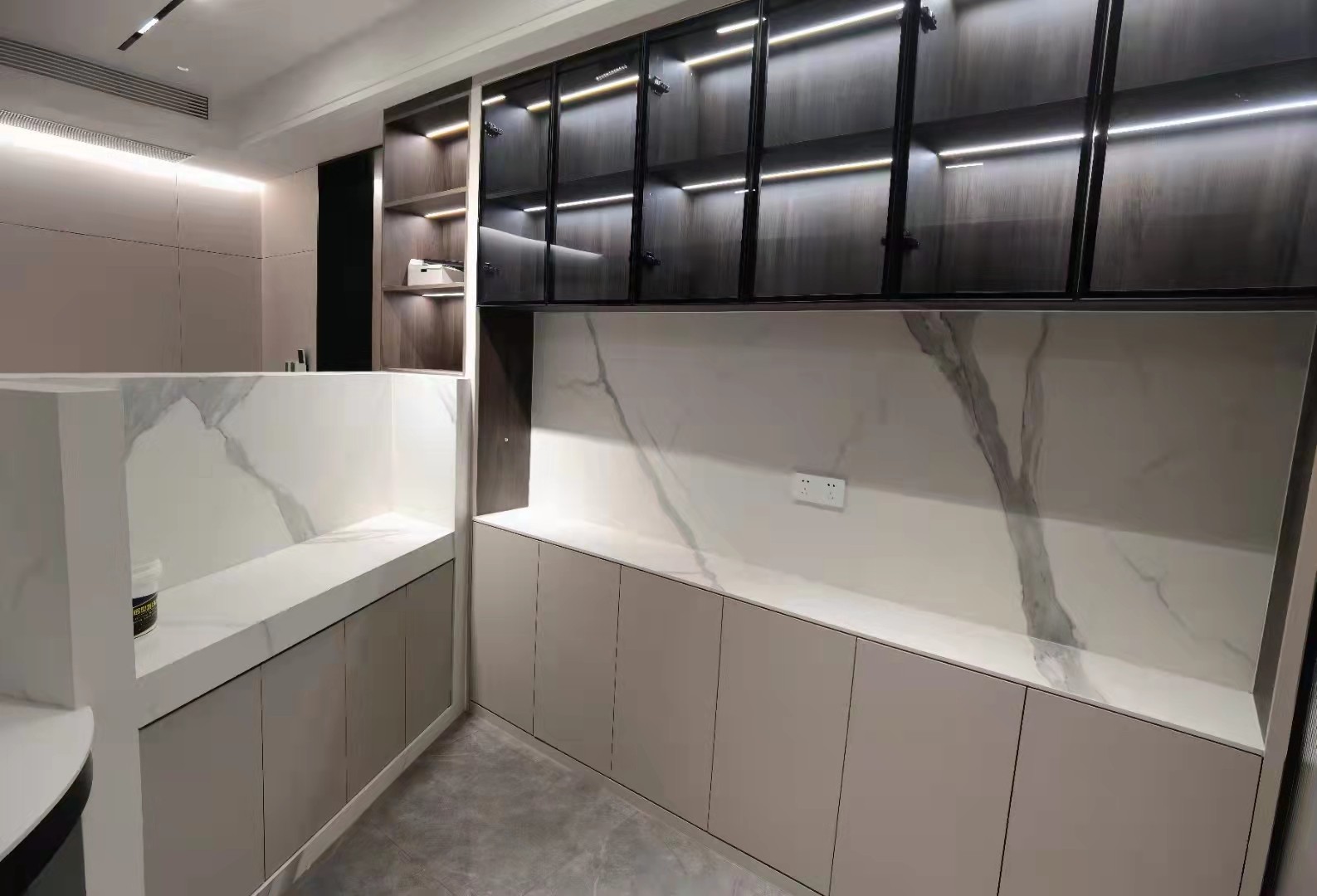 张家湾小区这套住宅的面积只有90㎡,原有的功能结构设计中只要两个卧室,并不足以满足业主的使用需求,因此设计师根据业主的需求与想法将阳台尽头区域的小空间改造成迷你保姆房,以提升空间利用率,就餐区域则设计在客厅区域的同一空间中,以减少空间浪费 6686官方版app,半开放式的厨房设计现代感十足,且有利用提升家居空间的视觉通透感。