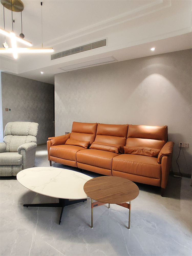 简约的灰色点缀上亮橘色皮质沙发 6686官方版app,清新而又不失活泼自由感。