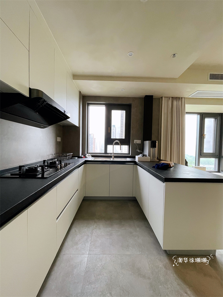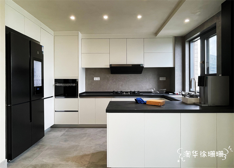 半开放式的厨房突出空间通透感,黑白经典配色耐看又时尚 6686官方版app。