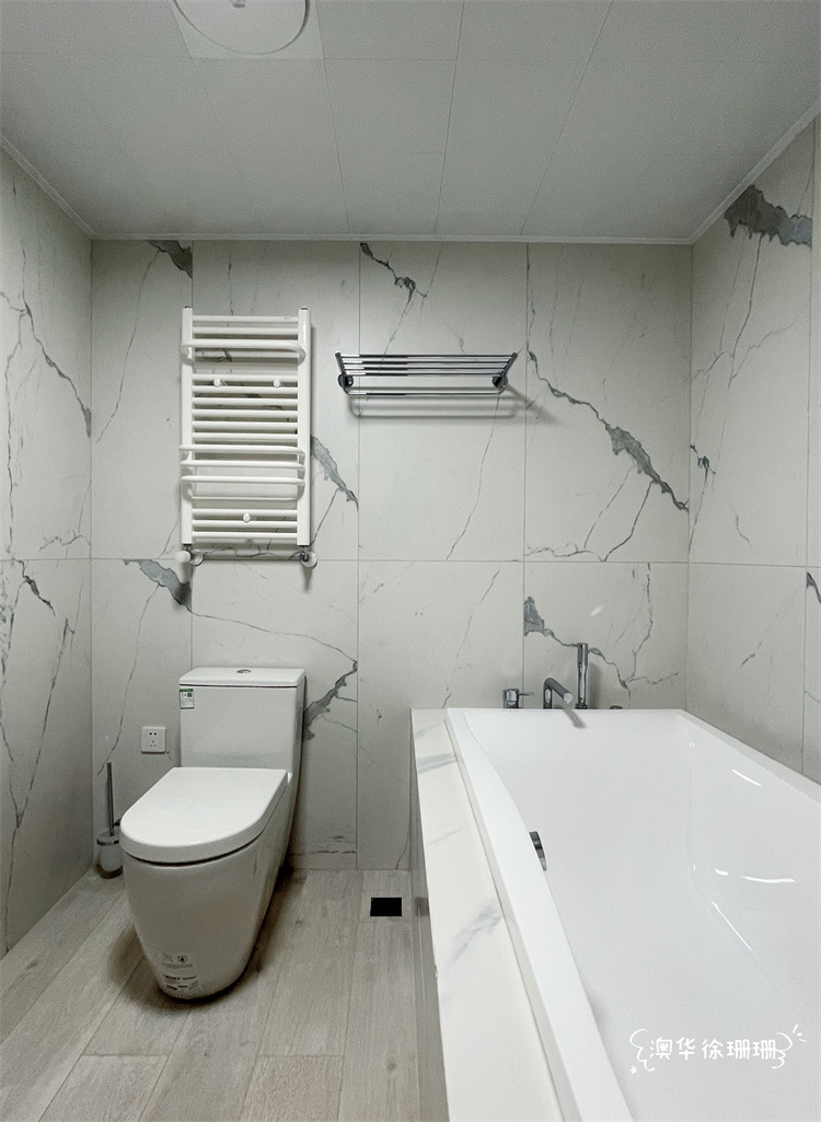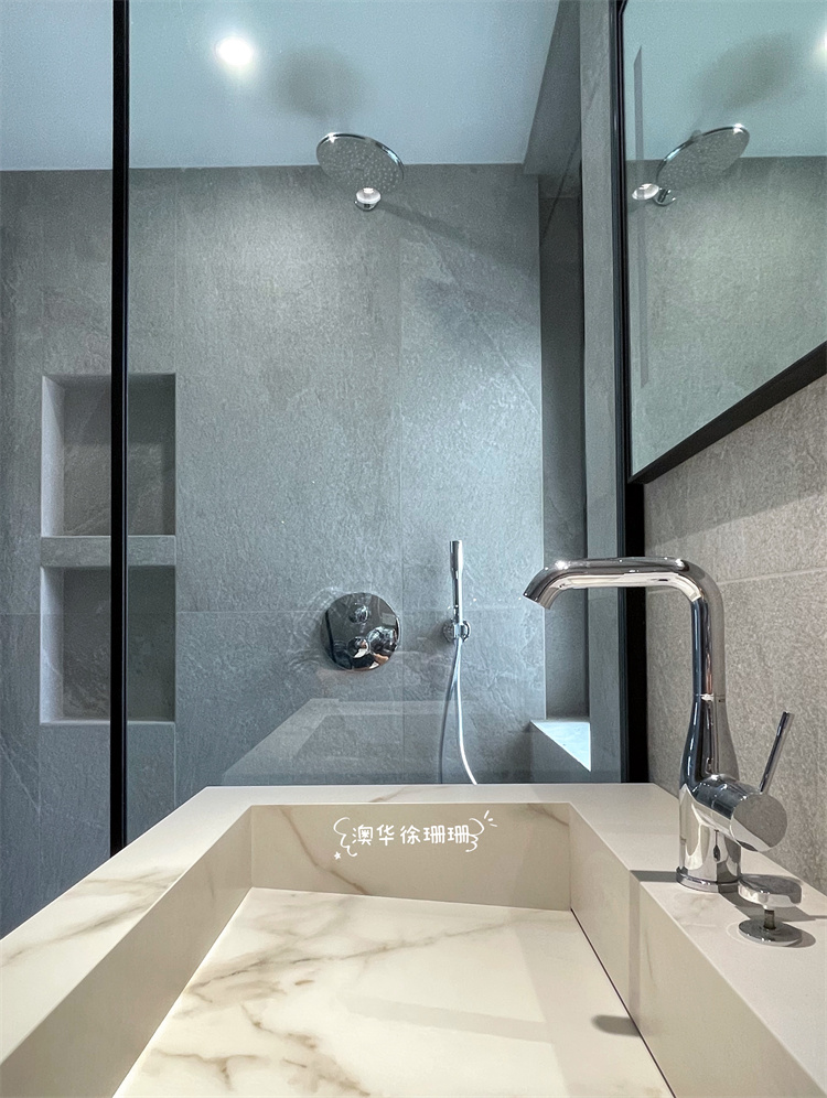 卫生间区域借助玻璃推拉门进行干湿分离 6686官方版app,同时利用黑色镶边打造空间结构感与层次感。