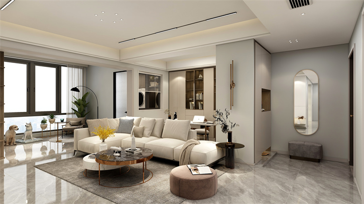 案例简介:本案例的客户是三口之家,忙于工作的男主人希望家居空间足够温馨柔和,并且有足够的亲子互动空间,而作为家庭主妇的女主人对于家的要求则是要耐看且易于打理,不希望空间出现过多华而不实的设计,设计师在结合两位业主的需求之后,选择以现代轻奢风进行整体的软装,使用尽可能易于打理的材料装饰空间,以满足女主人的需求,同时 6686官方版app,降低空间的尖锐设计,所有的台面及拐角均使用圆弧设计,避免孩子出现磕碰。