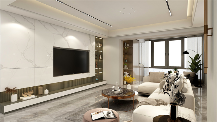 大理石地板高级优雅且易于打理,嵌入式电视墙设计则强调现代时尚氛围 6686官方版app。