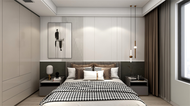 卧室区域借助大量的线条完成装饰点缀 6686官方版app,强调简约大气美,直线型的灯饰既可以满足照明需求,又能营造空间艺术氛围。