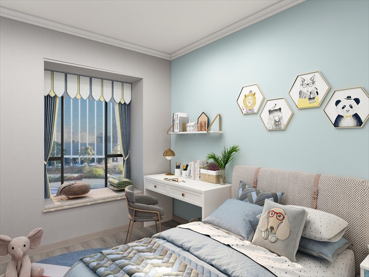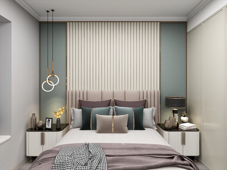淡蓝色的背景墙搭配上藕色衣柜,整体给人小清新的柔和韵味感 6686官方版app。