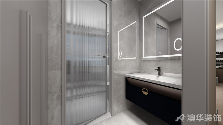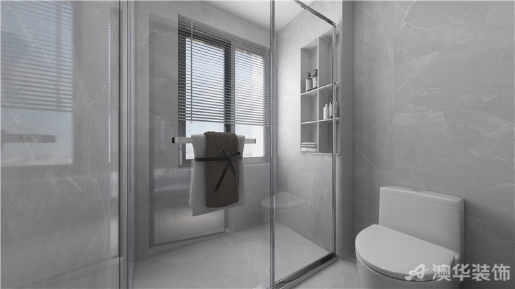 以白色包围的卫生间整体呈现洁净舒适氛围,玻璃推拉门则有效起到干湿分离作用 6686官方版app.