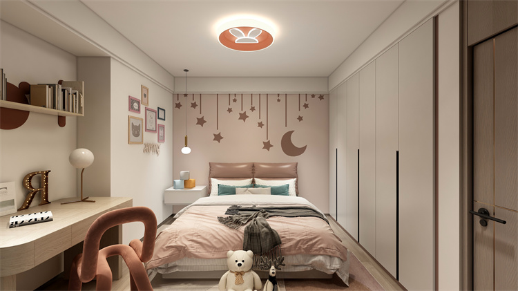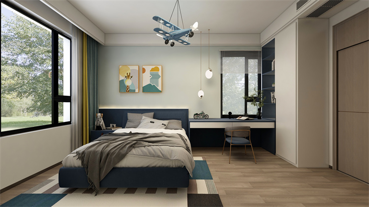 不同深度的蓝色组合让卧室区域的结构感更加明显 6686官方版app,阅读外面与衣柜的衔接处理则让空间融合感更加强烈。