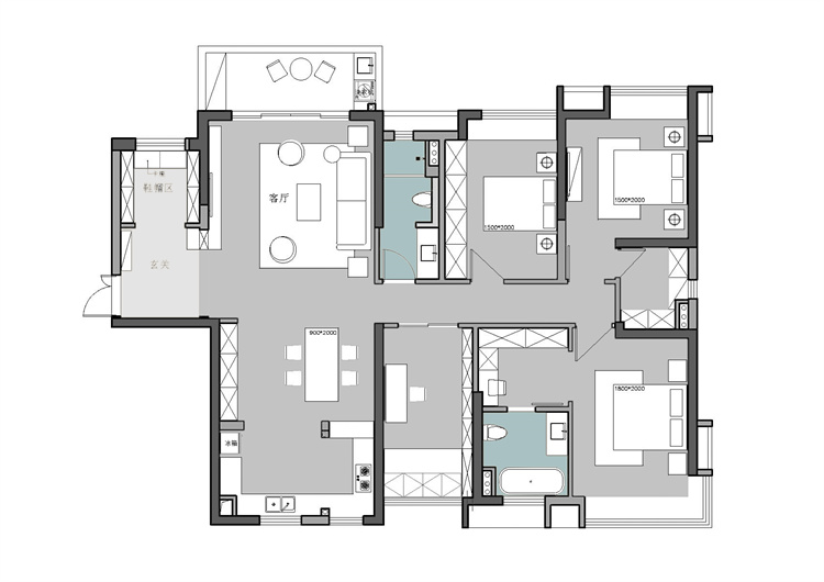 名都花园这套165㎡的四居室房屋整体的户型结构四方且平整,已经完成了基本的功能分区,不过部分细节处理并不够合理,因此设计师进行了部分的调整,原入户处玄关的遮挡较多 6686官方版app,设计师将玄关与客厅的墙面打通一部分,避免玄关区域过于封闭而带来压迫感,同时由于走廊过道相对比较狭长,设计师借助了一些软装设计来降低走廊区域的封闭感与单调感,进而提升整体家居的格调品质感。