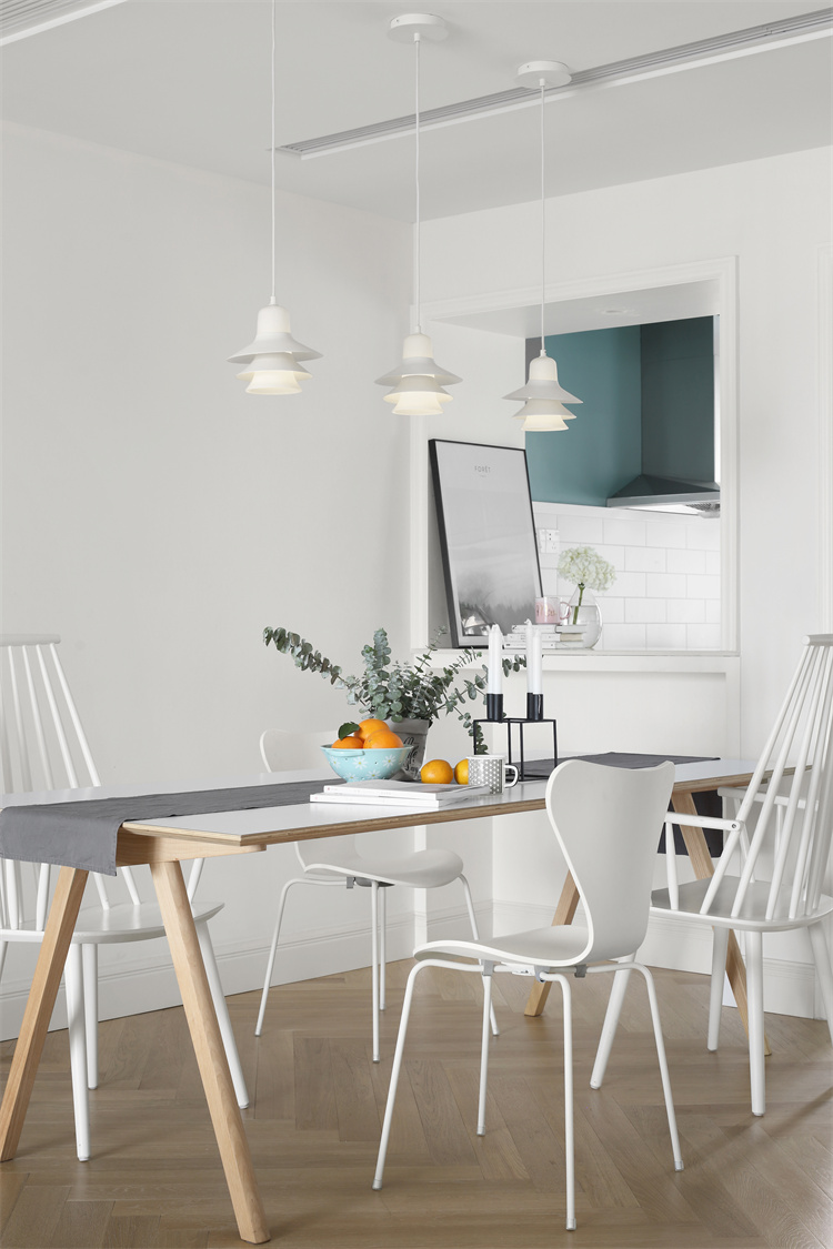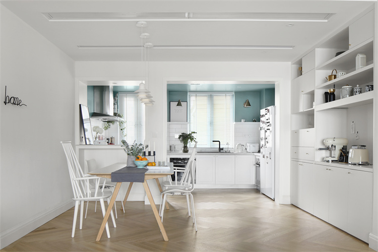 就餐区域同样利用洁净的白色作为主基调色,点缀少量的原木色 6686官方版app,强调空间自然清新美。