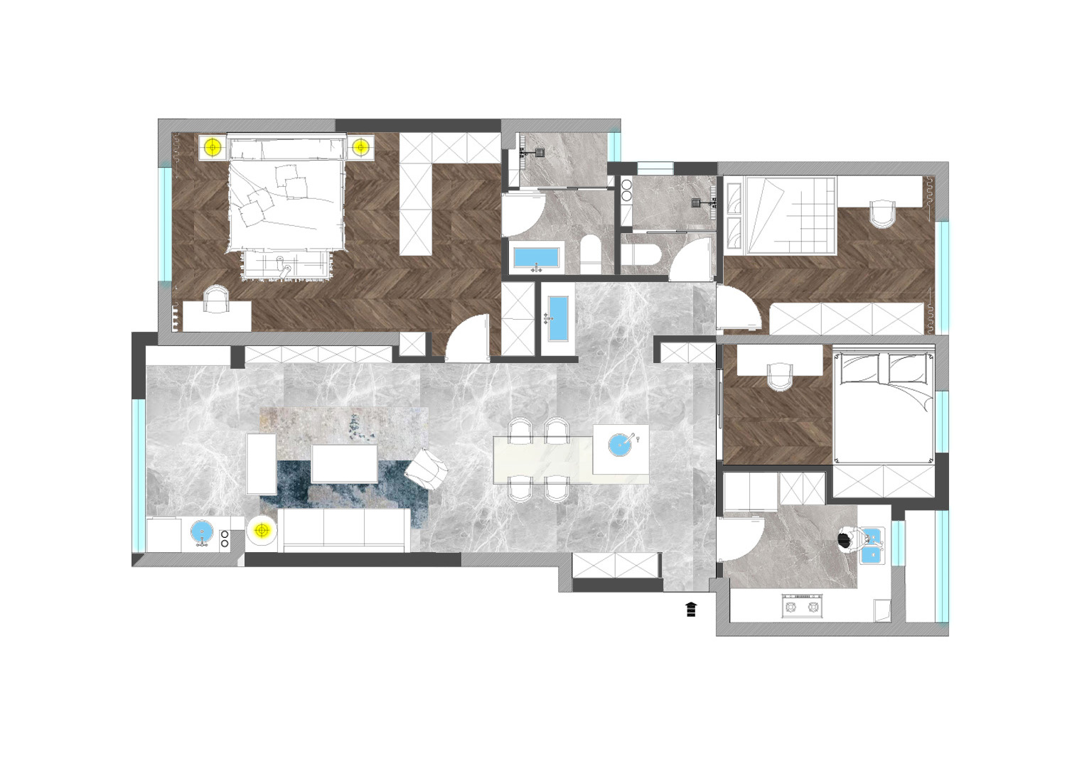 2 主卫纳入主卧,形成一个便捷舒适的套间。