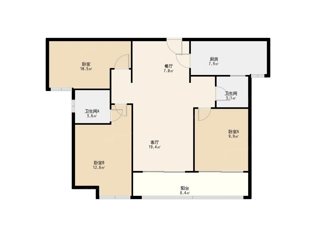 √ 三房两厅,能够满足多人口家庭的居住需求。