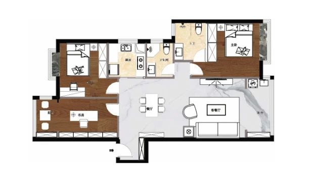 4 书房客厅一体,外加连体阳台,更广阔的家庭互动空间。