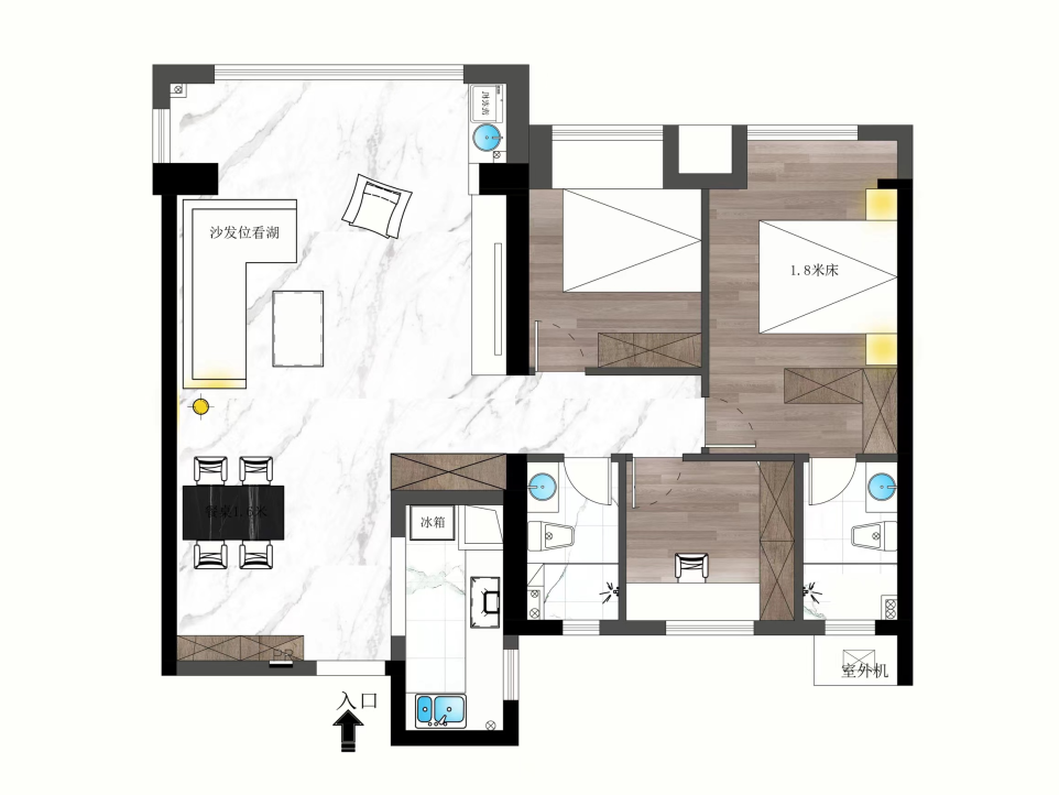 3 入户做一排玄关收纳柜,增加入户仪式感和收纳空间。