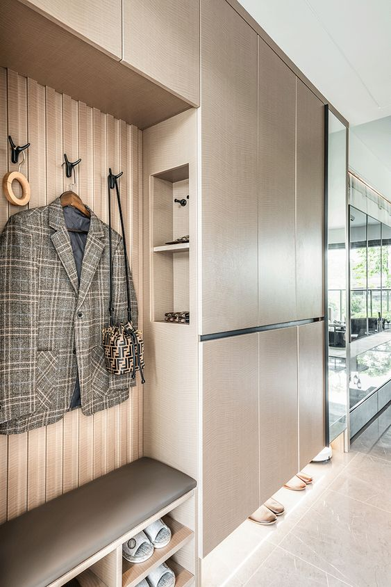 玄关作为室内外的缓冲空间,为了室内的干净整洁,防尘设计是很有必要的。