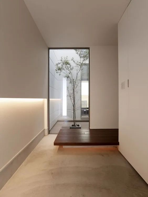 ①下沉式玄关:即制造室内地面与玄关区域的高低差,玄关一般相对下沉3-10CM,所以形成了一个落灰区,可以有效隔绝外界与室内接触,防止室外灰尘进入室内。