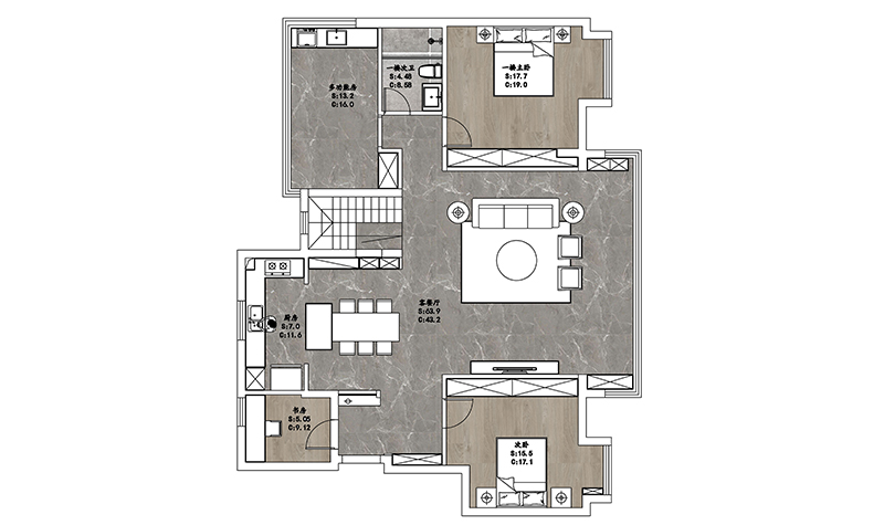 业主对家的定义:家里有两个孩子,一个上四年级,一个上初一,210㎡四房户型基本够我们使用,主卧的原始面积不够大,虽然自带卫浴间,但居住起来有些不够舒展,希望主卧能有一个更衣室,令空间看上去更开阔,另外,客厅有一些零碎的角落不知道如何调整,希望设计师利用这些角落,尽可能令房间变得更舒展。风格上,我们希望呈现出的是有品质,能凸显生活品味的设计方案。