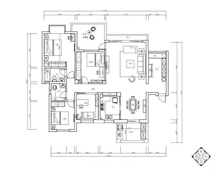 对于多子家庭来说,175㎡的房屋其实并不算大,因为需要预留出较多的休憩空间,且需要满足6686体育家庭成员的使用需求。再者,业主所青睐的新中式装修风格对于空间的面积也有着一定的要求,因此该房屋的设计难点就在于如何将不够宽敞的房屋打造出新中式浑厚大气美。设计师在进行设计时,在空间的规划设计上做了一定的设计,以避免过多隔断破坏新中式风所特有的大气感与灵动美。