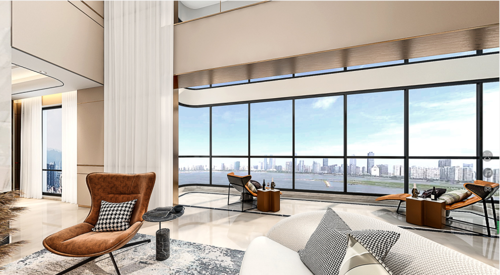 • 延续总体的构造布置落地窗,让自然光线可以照进室内。闲暇时刻与家人、朋友一起聊聊天、喝喝茶、看看风景,体会人生的美好。