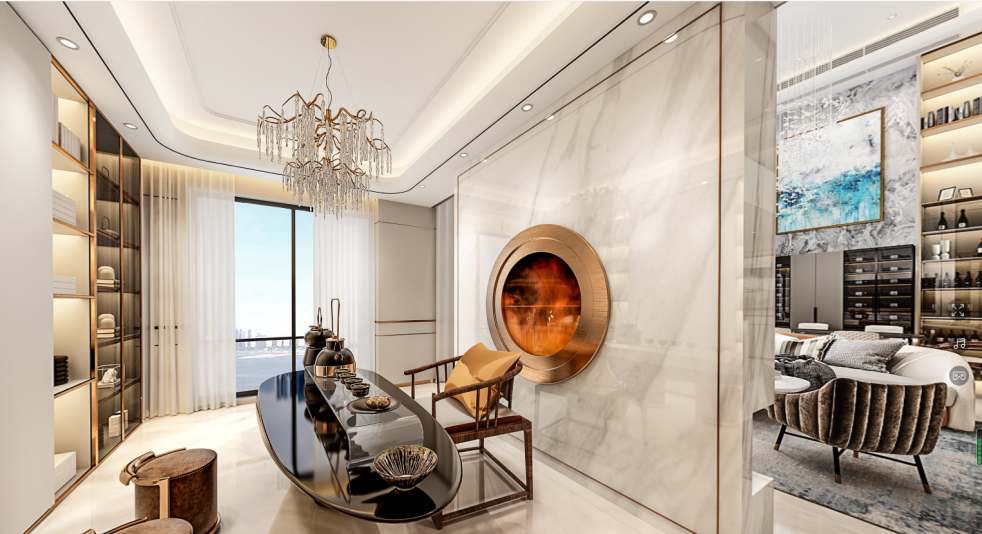 • 把现代风和古典风完美的结合在一起,硬装会更偏向现代风,家具和软装会 偏向古典风,整体感觉十分时尚、奢华、有品位。