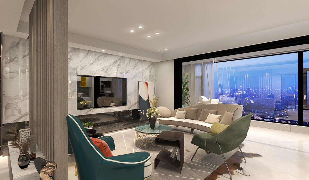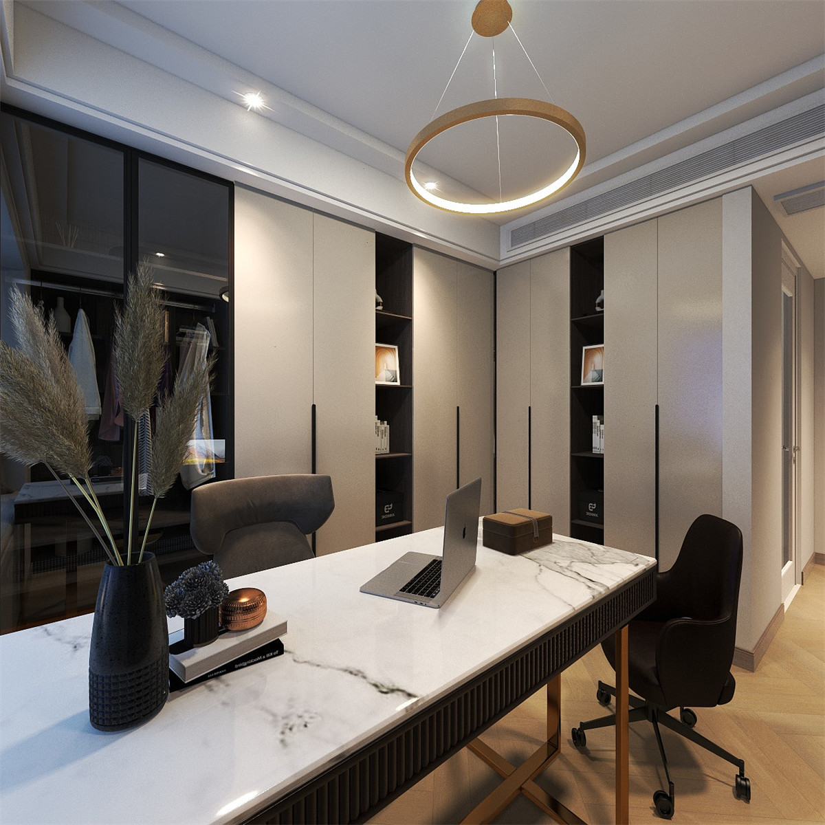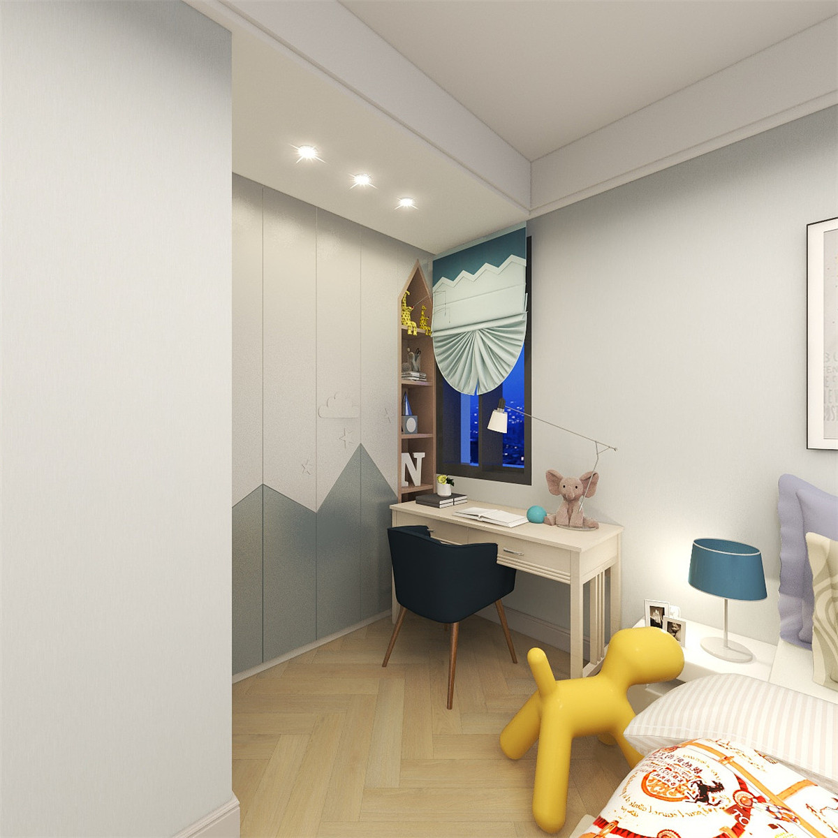 本案特色是把窗景接壤于室内,并使窗景得到最大限度的利用。在浓墨重彩的地方反其道而行,使用漫不经心的方式,更能营造出一个轻松有温度的环境气场。儿童房和公区是两个不同的世界,视觉感也有很大的差异。儿童房把卧室和卫生间合二为一的,给孩子自由的空间,童趣的装饰让孩子的世界五彩斑斓!主卧书房套间,把二者分成了互不干扰的休息区与办公区。主卧极简的配色,却在各种线条形状的搭配之下,显得层次丰富,温和清静,质感十足。安静休闲的格局,让人舒适放松,卸下所有防备与疲惫,静享惬意时光。