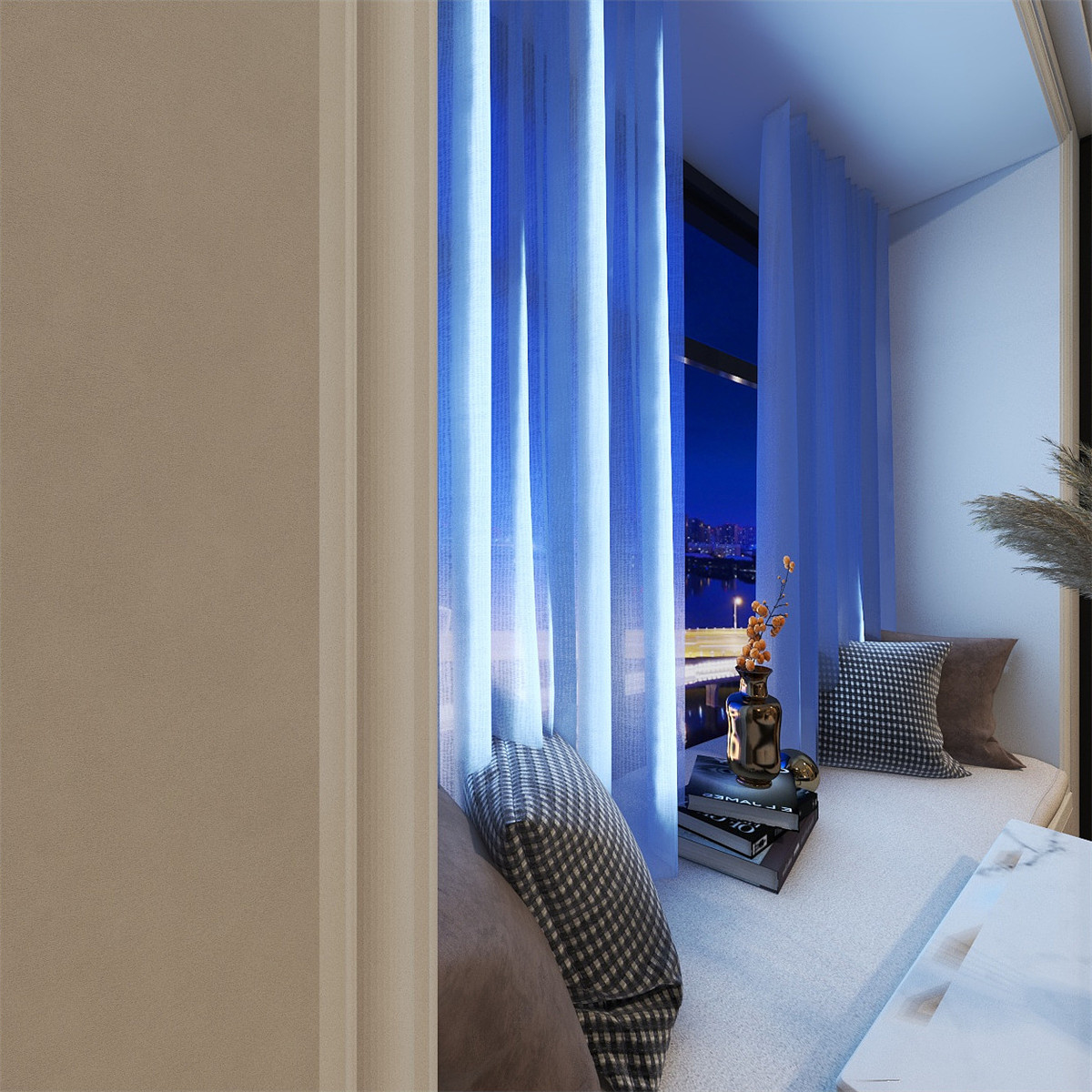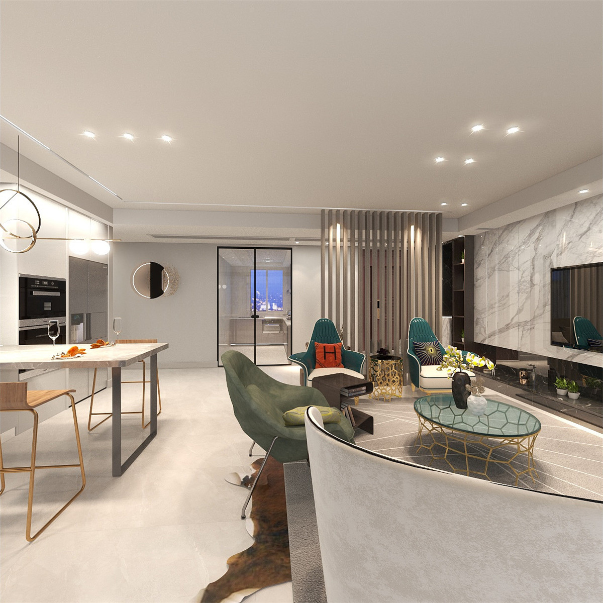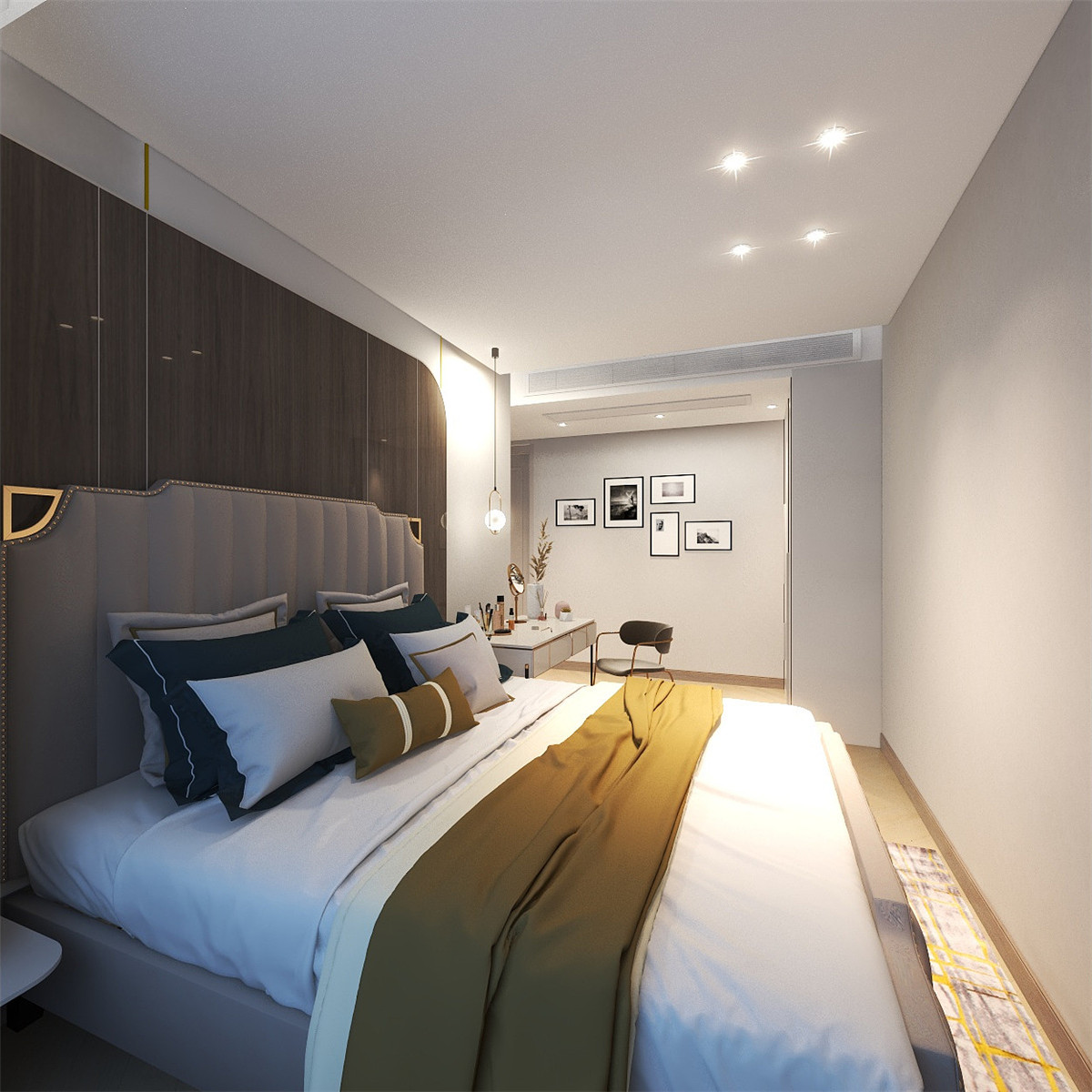 本案特色是把窗景接壤于室内,并使窗景得到最大限度的利用。在浓墨重彩的地方反其道而行,使用漫不经心的方式,更能营造出一个轻松有温度的环境气场。儿童房和公区是两个不同的世界,视觉感也有很大的差异。儿童房把卧室和卫生间合二为一的,给孩子自由的空间,童趣的装饰让孩子的世界五彩斑斓!主卧书房套间,把二者分成了互不干扰的休息区与办公区。主卧极简的配色,却在各种线条形状的搭配之下,显得层次丰富,温和清静,质感十足。安静休闲的格局,让人舒适放松,卸下所有防备与疲惫,静享惬意时光。