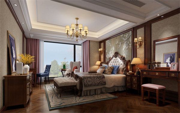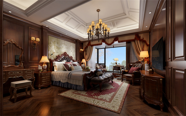 美式古典风格是众多风格中的一种,在传承欧式文化的基础上结合了美国自身文化的特点,而形成的自己更格,其实它的风格是一种混合风格。1 借鉴了古典主义和新古典主义风格的元素和特点是美式古典风格的一大亮点。美式古典风格装修材质主要为坚硬、华丽的材质,亮色较少,窗帘和壁纸也多选用柔和色彩。营造温馨的古典气质。摒弃了欧式的富丽堂皇的气质,转而更注重家居整体的实用和协调。2 美式古典风格装修更考虑每个空间的多样用处。与客厅空间相比,美式古典风格起居室较低矮平和,起居室选材也多采用舒适柔软的材质,更注重家庭氛围。起居室内也多配以电视等娱乐用品,可以想象在这一空间中孩子的欢笑,电视声音,谈话声在这一空间中的其乐融融。3 美式古典风格装修中的家具也很有特色,主色调是黑、暗红、褐色及深色的美式古典风格家具色泽较深,在家中更显稳重优雅。其卧床有高柱和帐幔,曼妙的床幔可以看出美式古典风格的优雅美。而美国古典风格的椅子凸显了“安娜女王”的特点而美式家具的雕刻在做旧、虫眼、浸蚀等的点缀下,尽显美式古典之美。