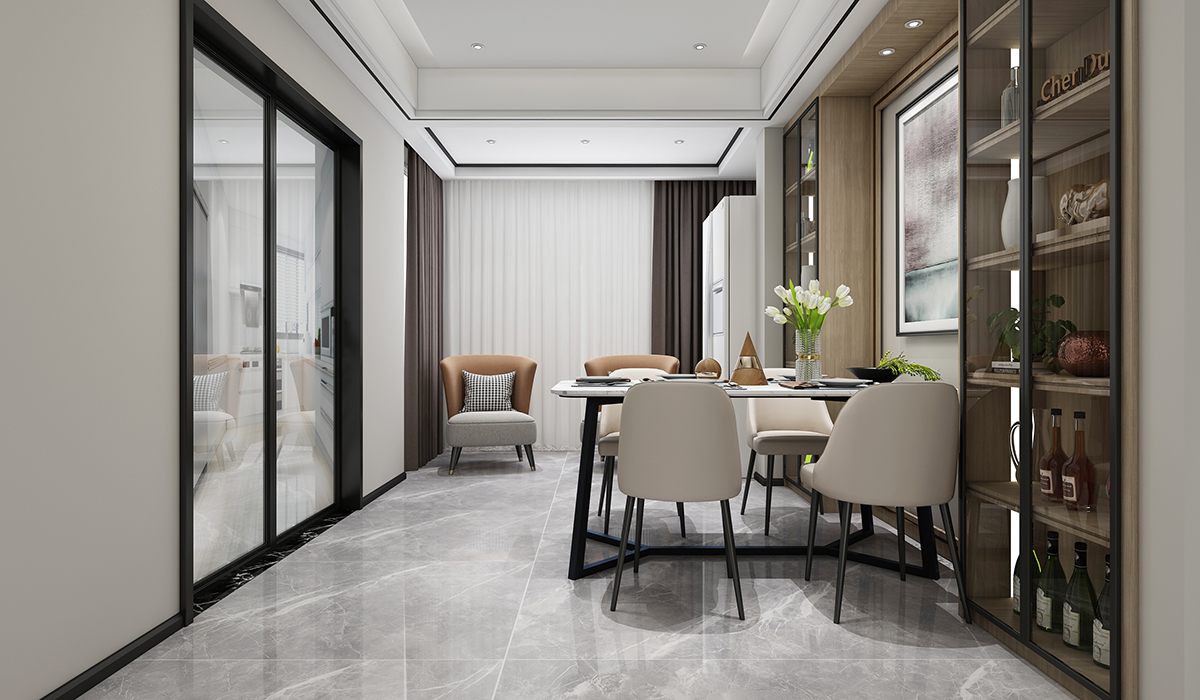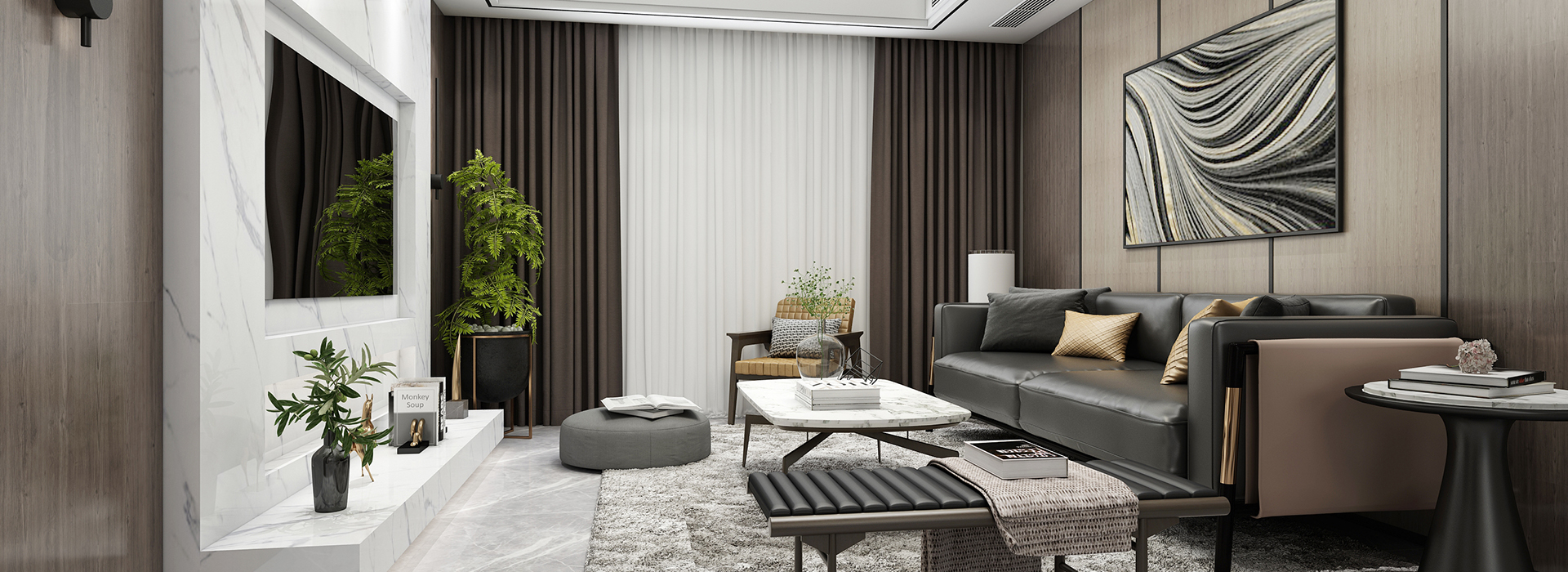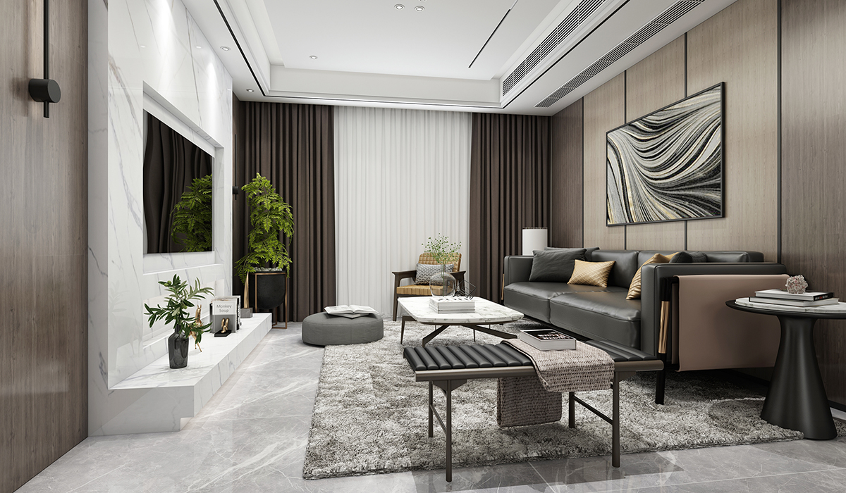 业主向往现代精致简约风。在满足日常居住的需求下,整体风格颜色材质以黑白灰为主,通过对色调深浅的调整,及穿插温润木质元素来打破暗调沉闷的氛围。