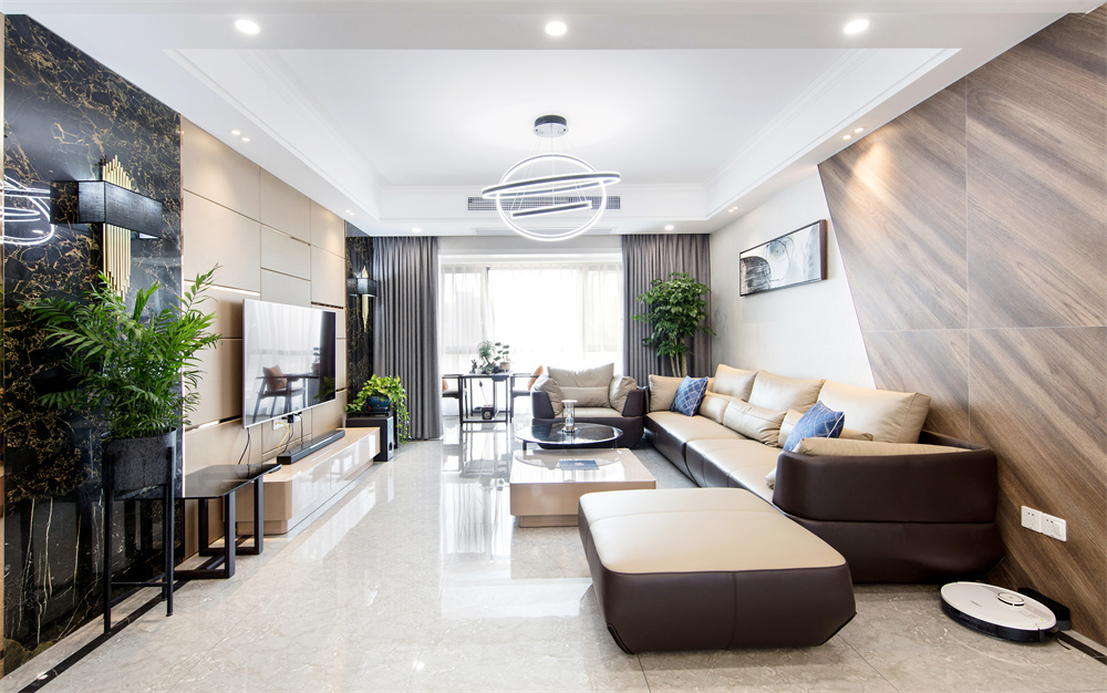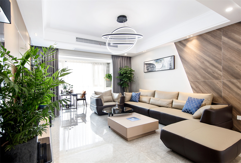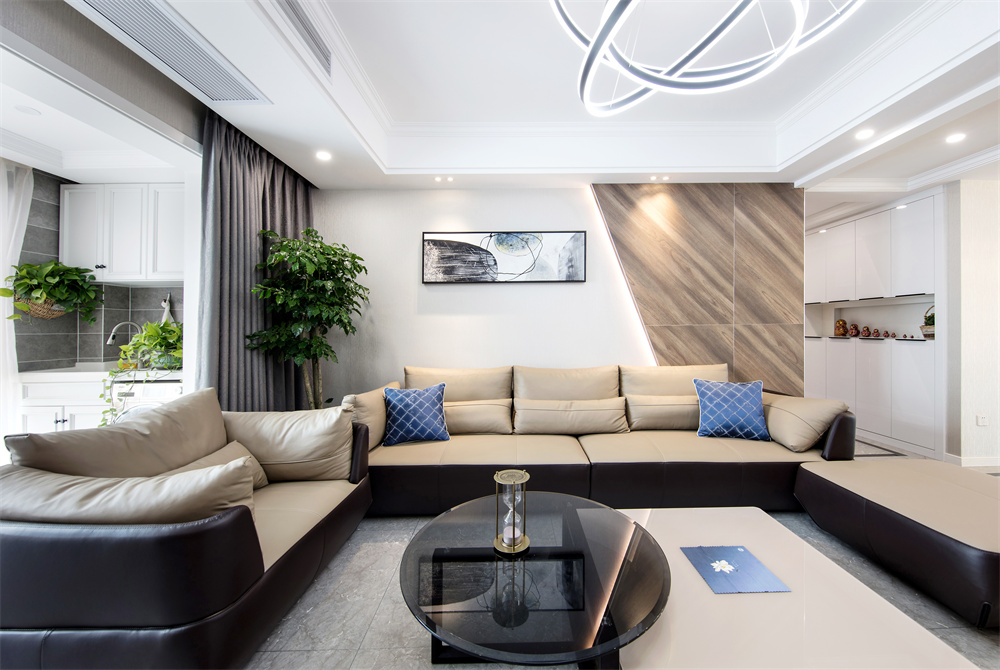 本案为现代风格,在满足客户收纳的前提下,让家里的每个地方都是一个景点,沙发背景墙的设计现代立体,与玄关搭配,带来一种时光穿梭的感觉