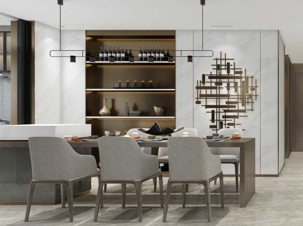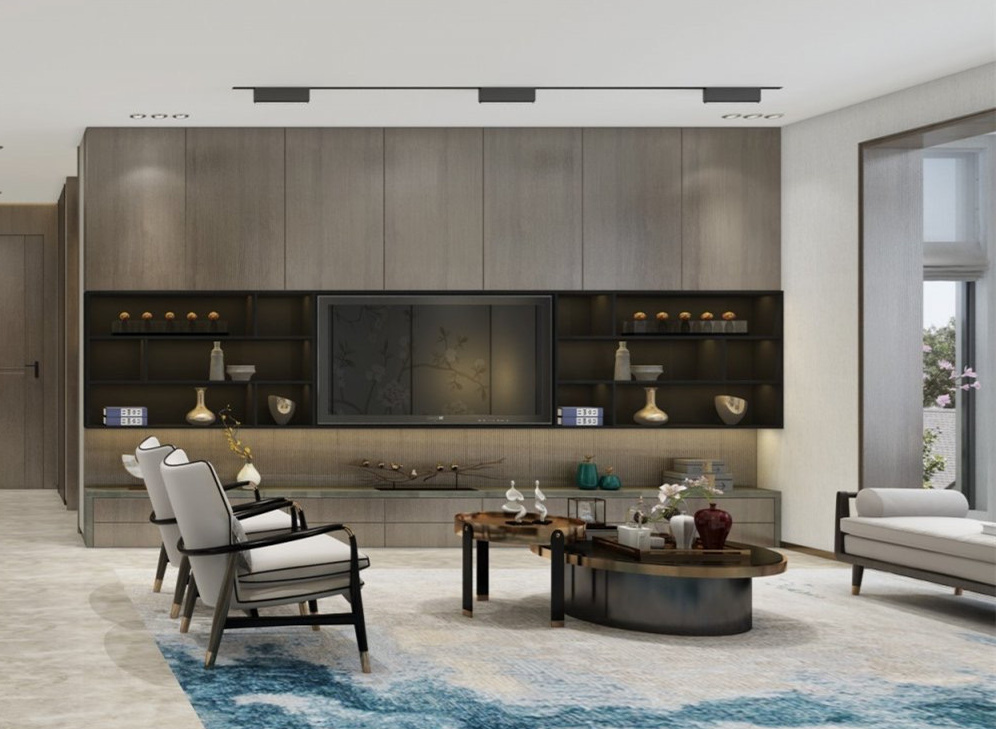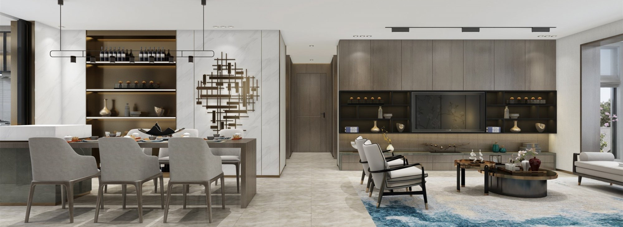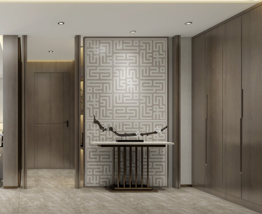 本案采用新中式轻奢设计手法来呈现,对原始户型进行了局部的调整以来更加优化功能分区。整体色彩采用中性咖灰色系。材质采用复合石材及不免硬包、木饰面、天然石材、不锈钢、乳胶漆等为主要材料。厨房利用隐藏式移门来满足日常生活的各种场景。再设计和灯光以及质感为中心理念,围绕宜居,舒适的生活环境为主导思想,从而呈现出业主满意并且具备观赏性及品位的居住空间
