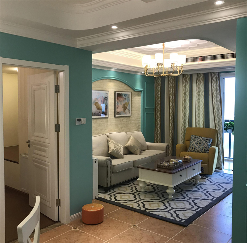 这套房子是业主给父母准备的,整体采用了年轻风格的设计,配色较为明丽,主要是想让父母的生活充满色彩。