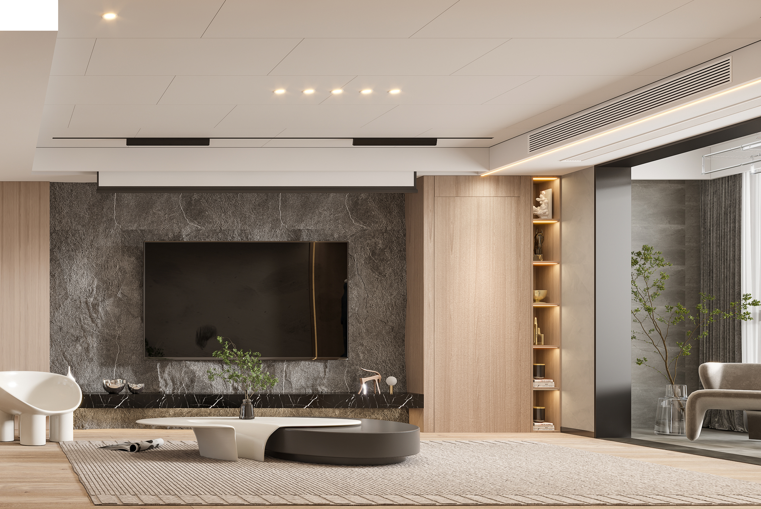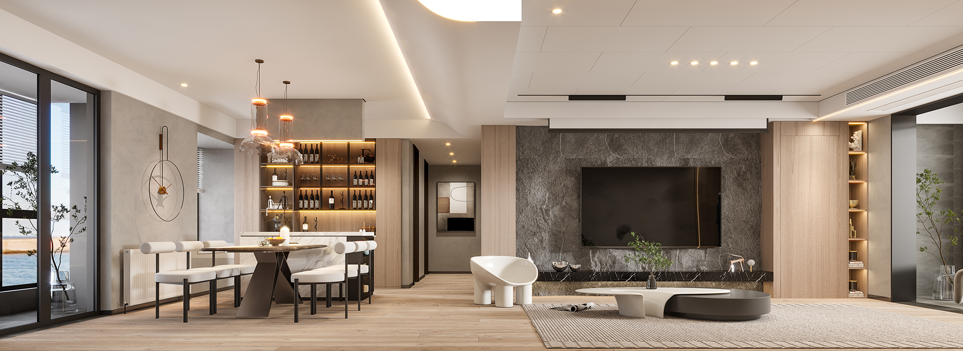 去掉沉闷的台式格调,重新定义,浅色木饰面和加上细腻的手法,轻松自然