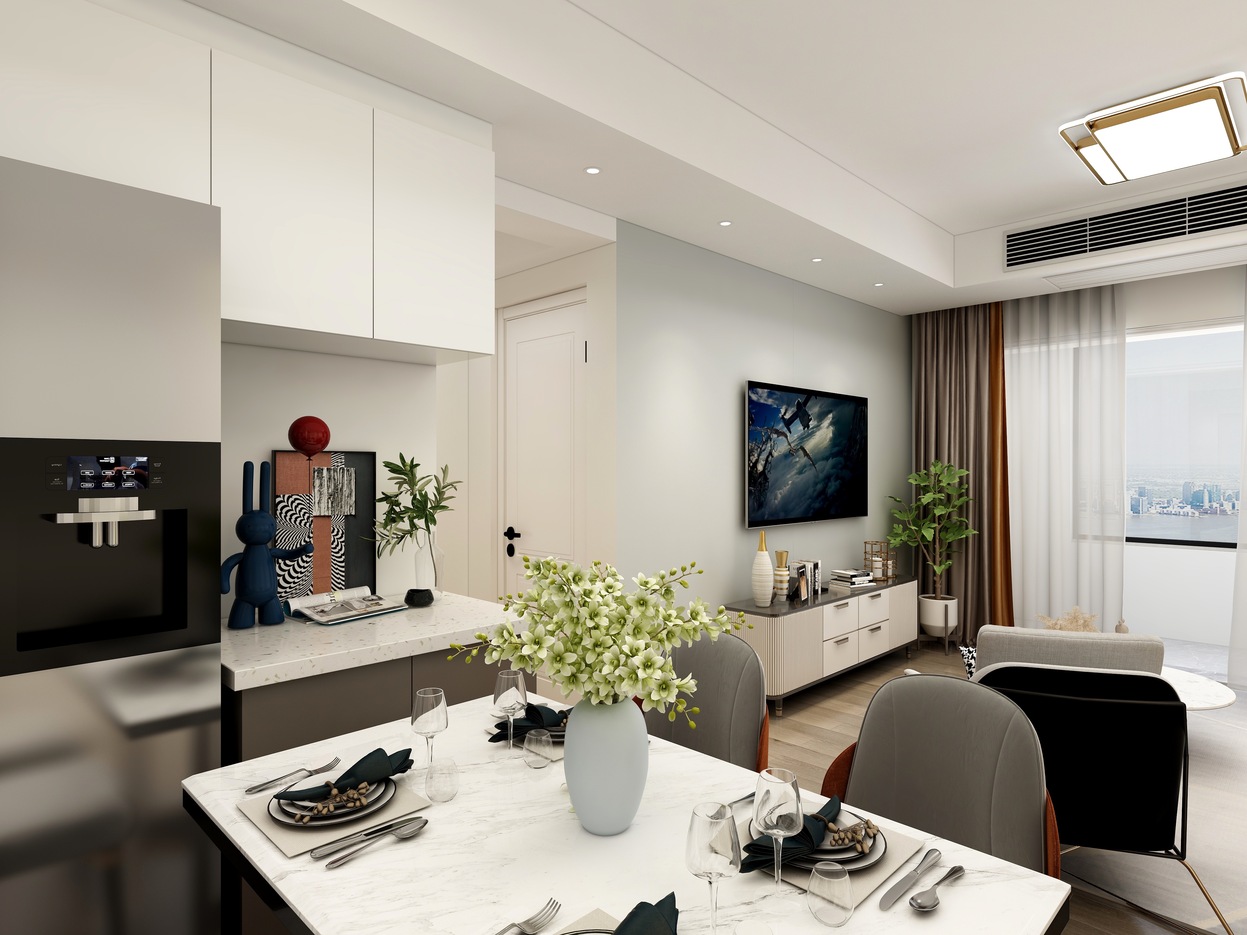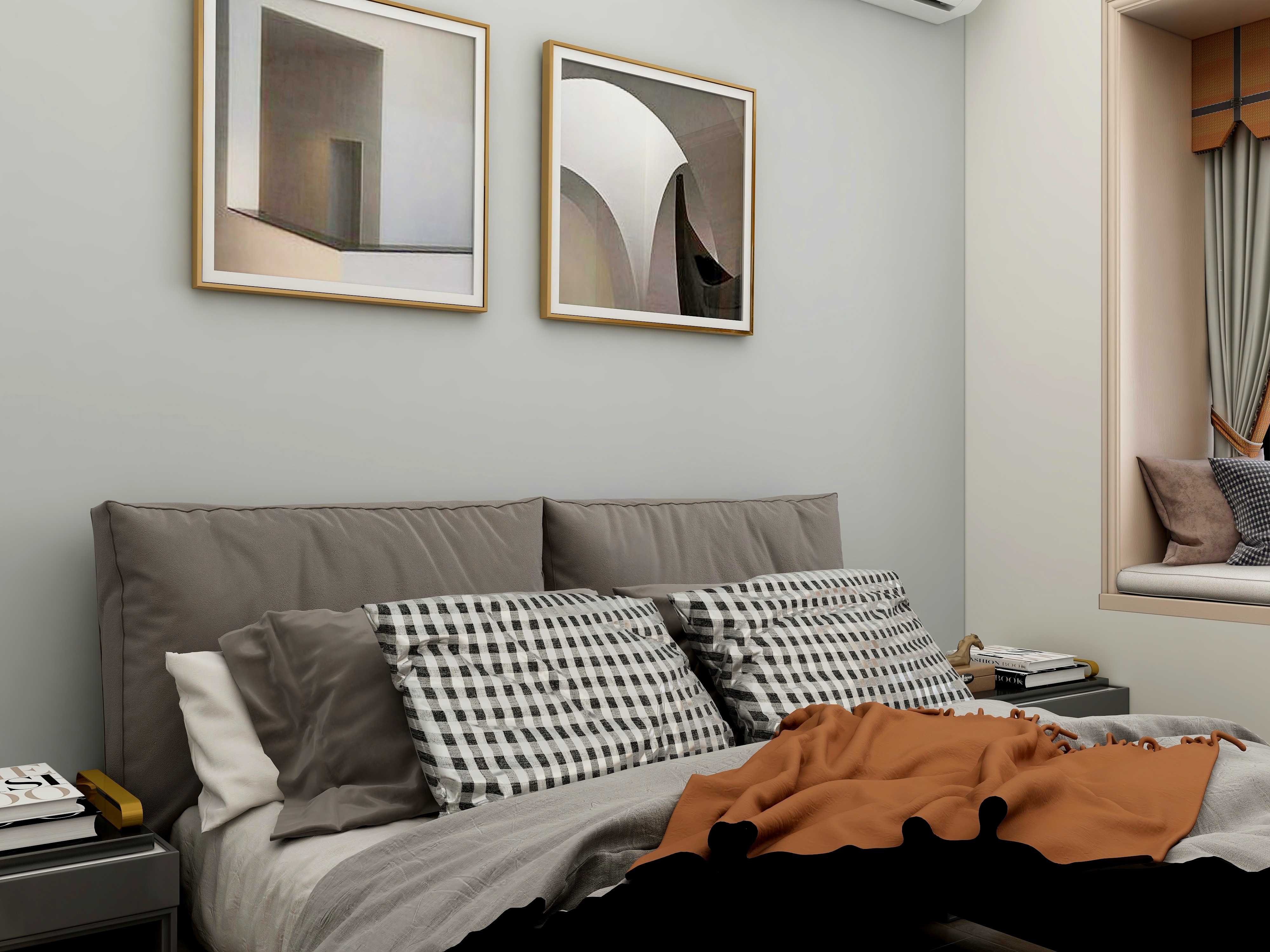 简洁而又实用不易太快落后于新的风格,软装加上跳色从而达到有亮点而又不夸张的视觉冲击