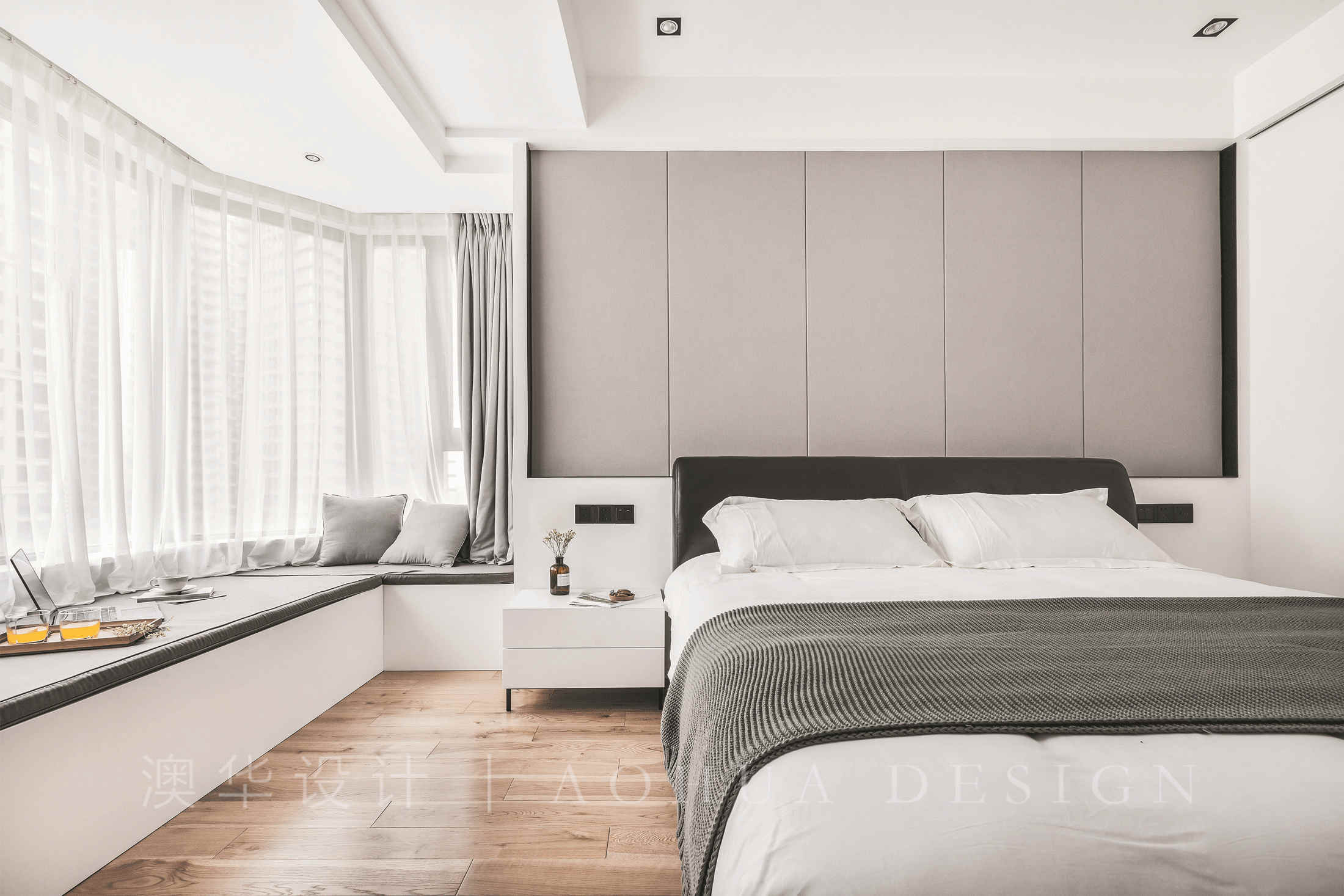 • 主卧的设计去繁求简,没有强烈的要素碰撞,只留下家的自然宁静。将主卧窗台做成大飘窗,可以卧坐于此赏景发呆,其下也可以收纳杂物。
