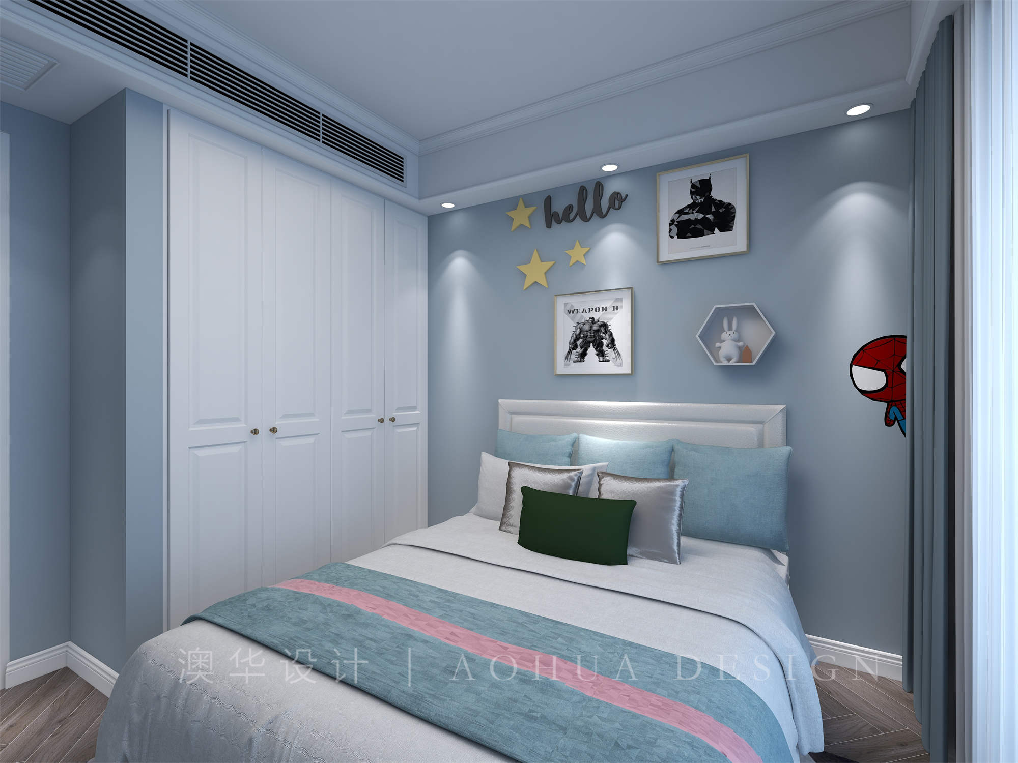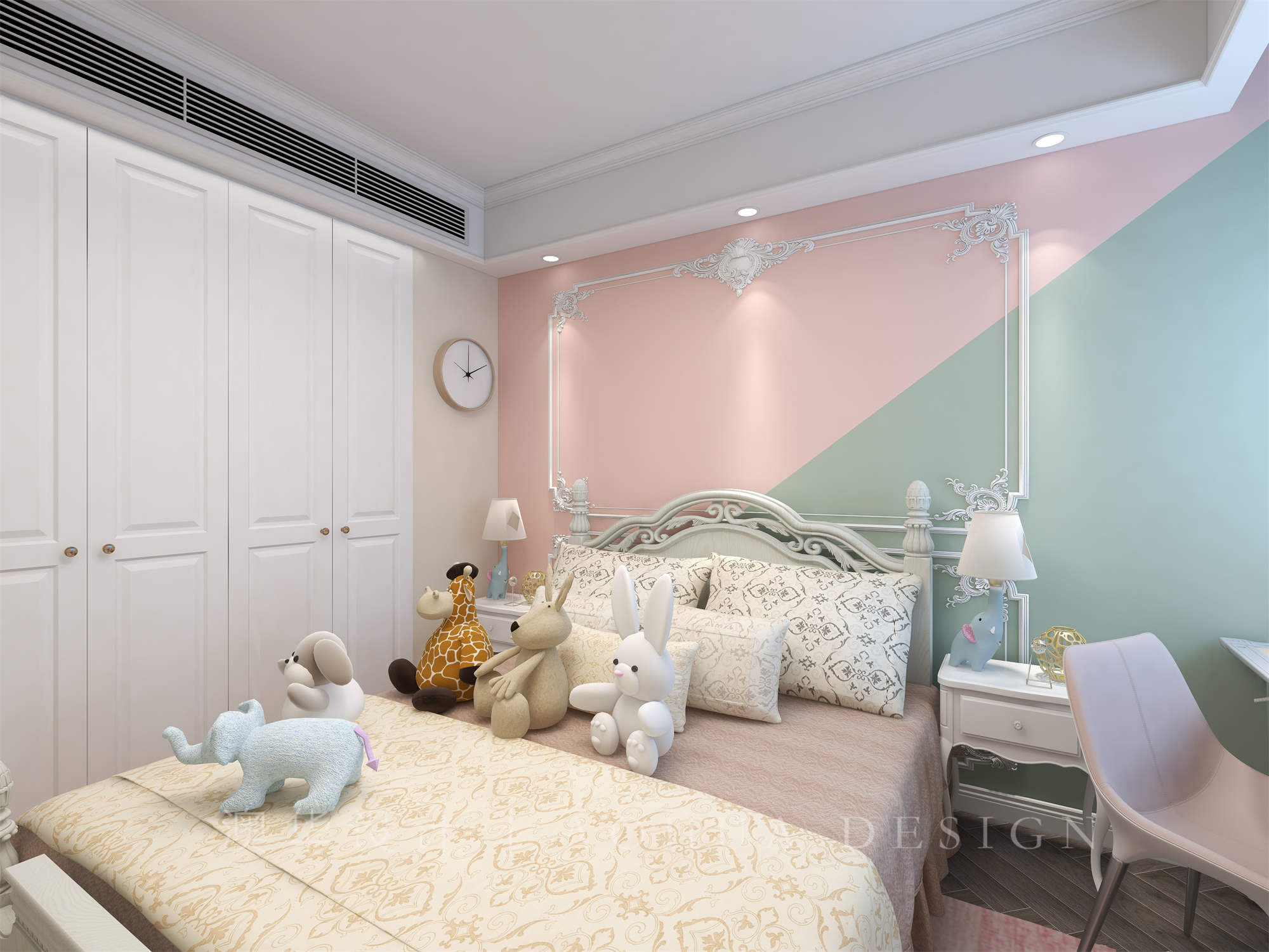 • 卧室在设计上更重视的是实用与舒适,屋主需要一个超大衣帽间,所以我们在尽可能少改动的前提下,扩大了进出主卧走廊空间,
