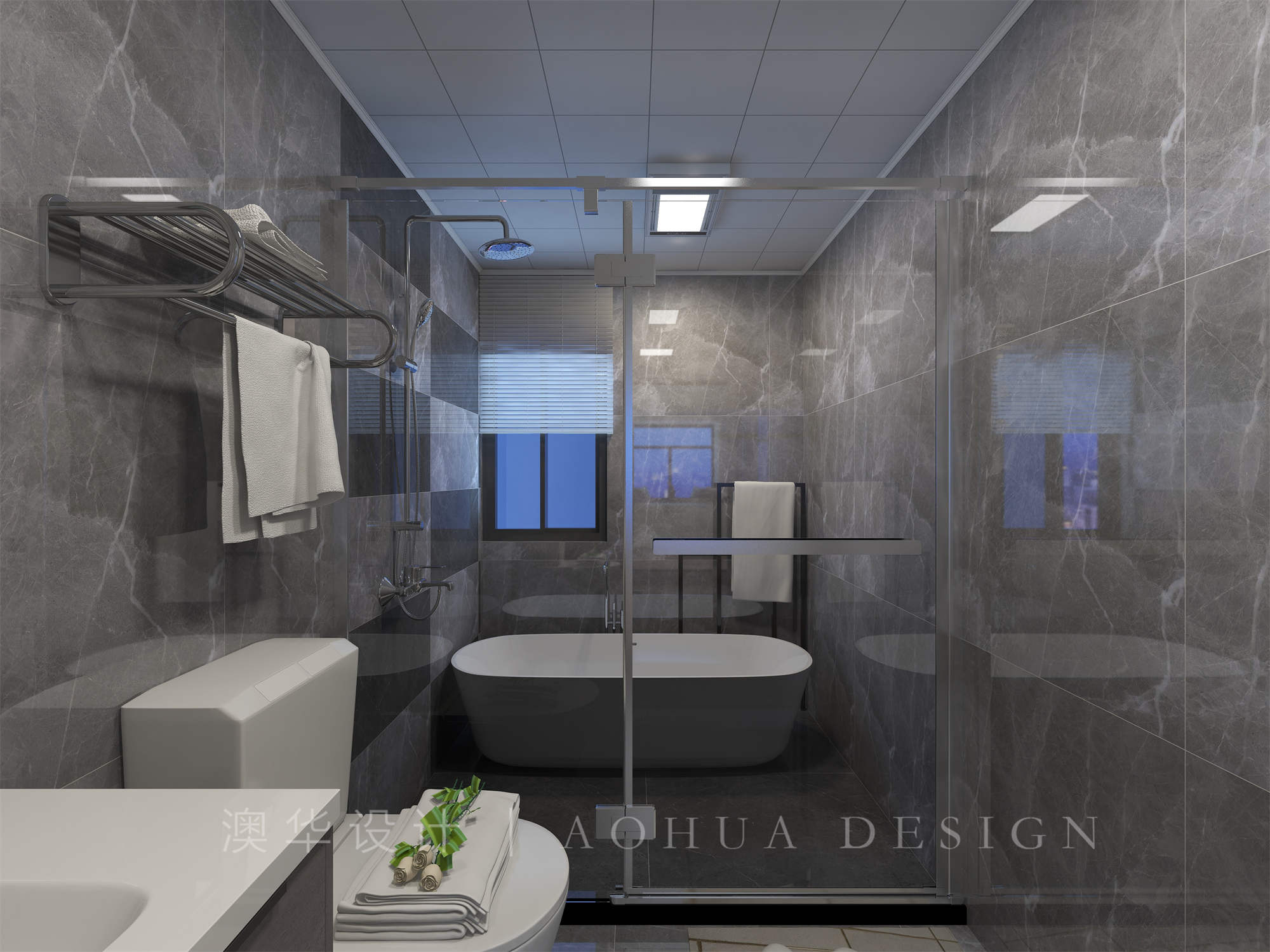 • 卫生间进行墙体平移,虽然缩小了空间,但是进行了布局调整,在干湿分离的同时下最终实现了洗漱、入厕、淋浴、浴缸四个功能。