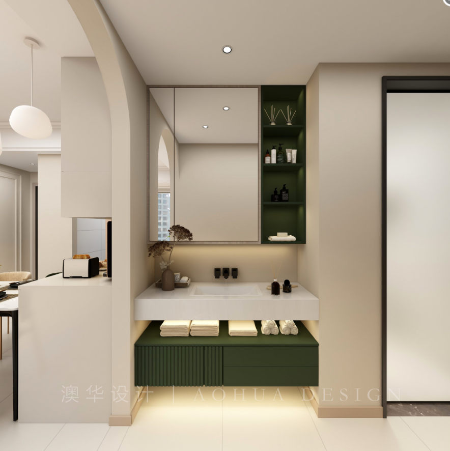 白色和米黄色之间的一种饱和度低的驼色系,色彩充满清甜感。相对于纯白多了一份醇厚,清清淡淡之间呈现出软糯的温柔质感,优雅而恬静,设计元素多采用奶油、石膏线、拱门、壁龛搭配可爱软萌的家