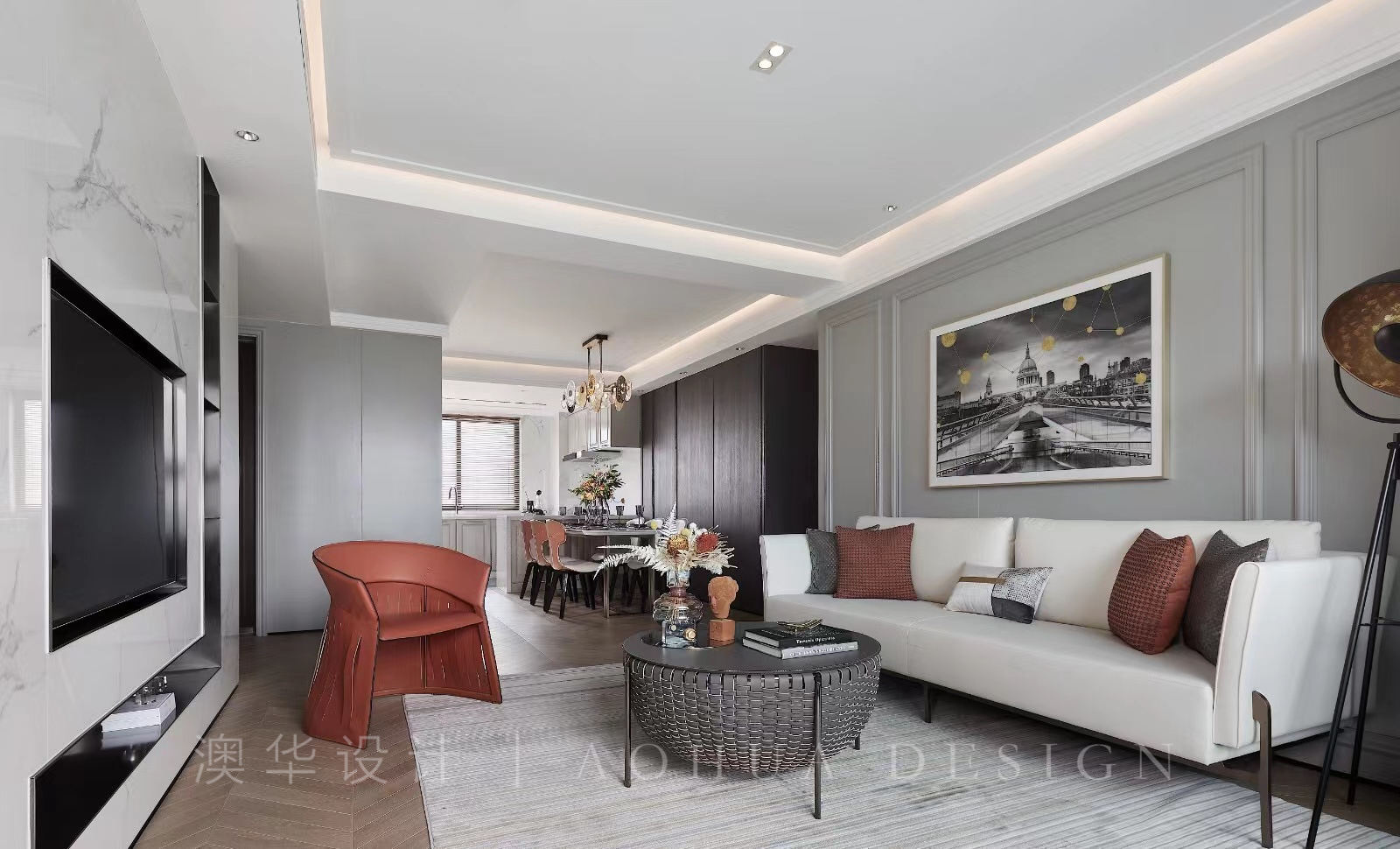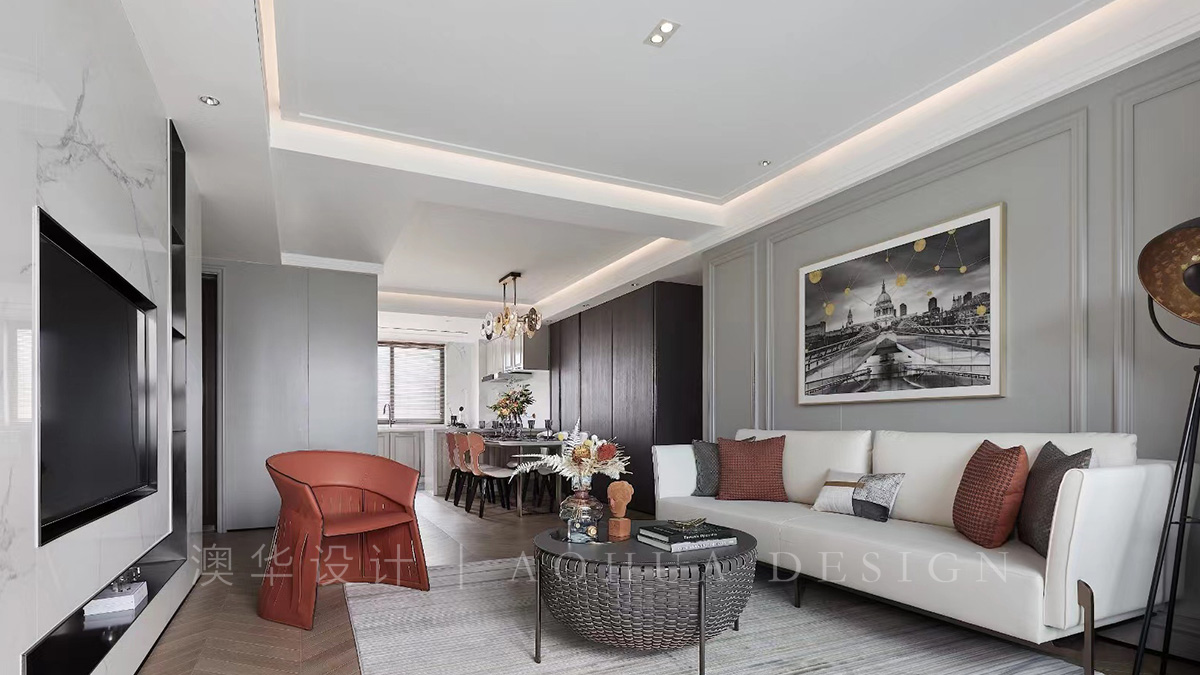 • 从视觉上给人优雅精致的印象;简单的沙发茶几地毯,让一家三口能在客厅舒适的相处,功能与颜值,都恰到好处。 想要表达空间的质感,并不是只有用昂贵材质堆积;墙板加线条就是一个不错的选择,迥异的花纹、不同的排列,组合在一起,轻易凸显空间层次感与质感。