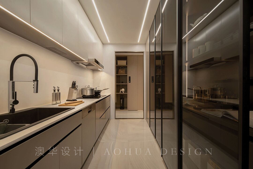 • 岛台餐桌一体化,使用时可进行拉伸,随生活场景不断变化,尤其是在居家办公日趋平常的当下,就餐、线上会议、阅读、聊天.....一家人的工作和生活都可以在吧台满足。操作台结合收纳柜,明确了“备菜-烹饪-出菜”的动线布局,一家人共享烹饪的乐趣,不再手忙脚乱。