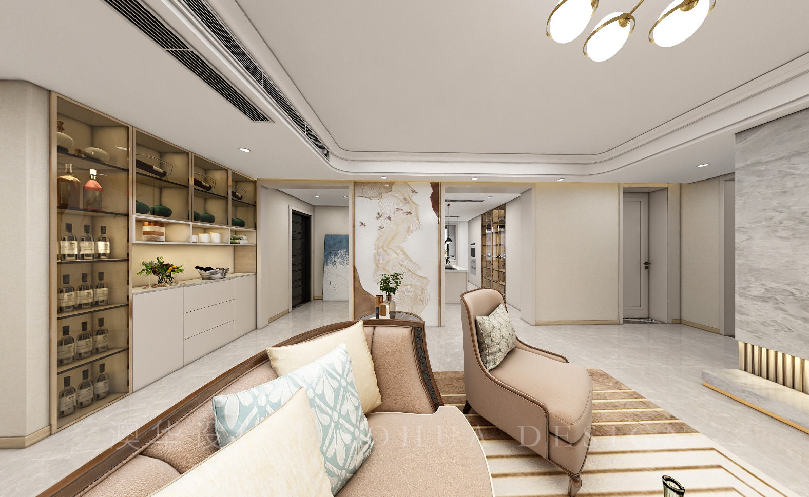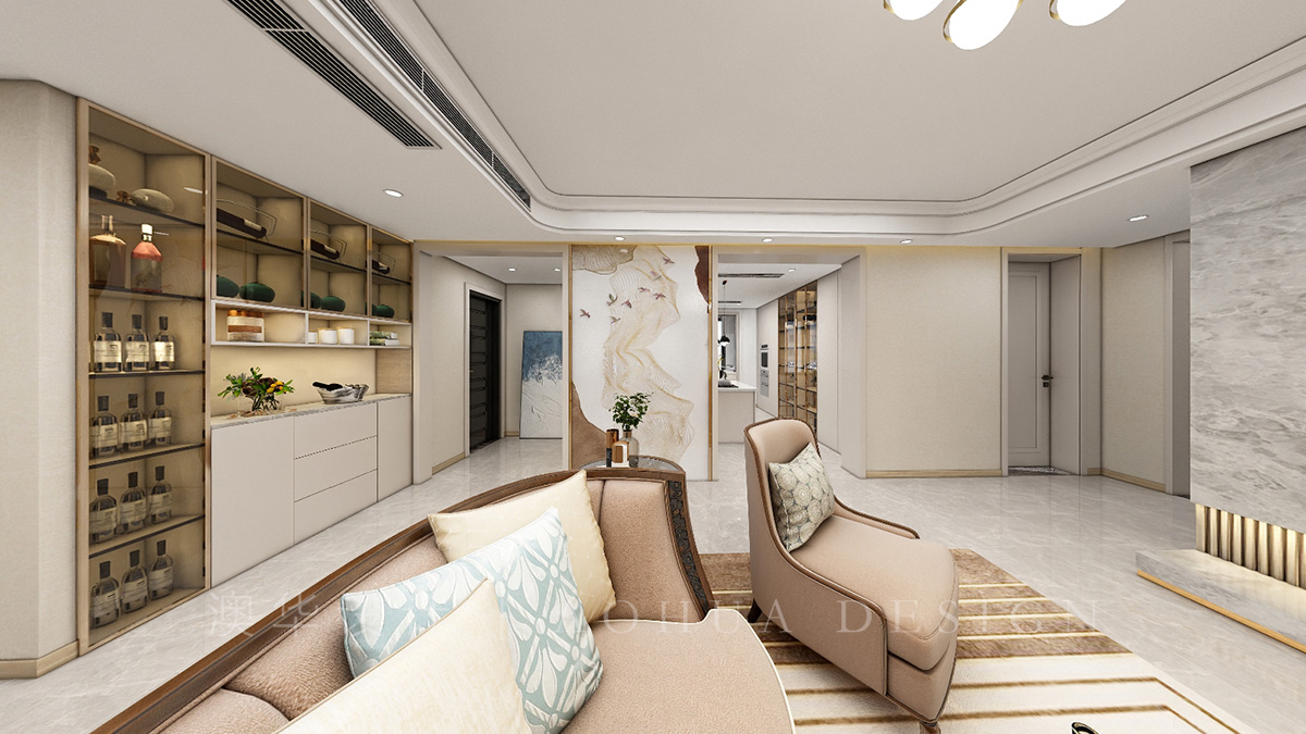 • 客厅采用美克美家家具软装及部分美式装饰元素的搭配,将现代简美风格完美的展现了出来。