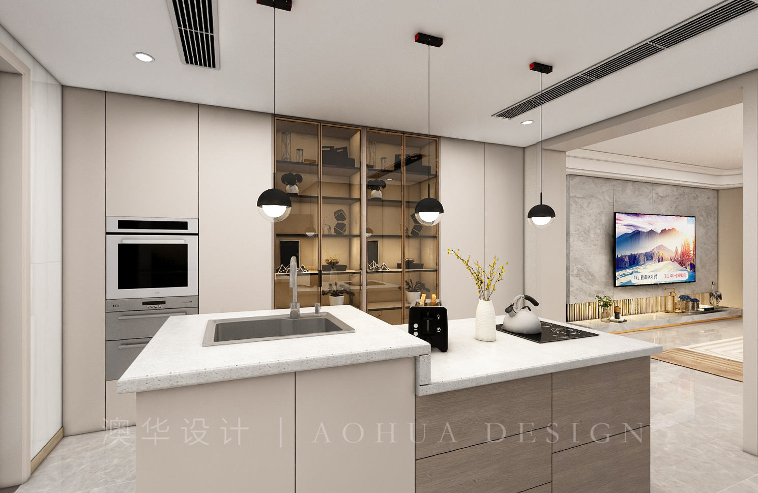 • 餐厨一体化设计,使整个空间更加开放,便于家人之间相互交流,使空间得到了合理的运用。