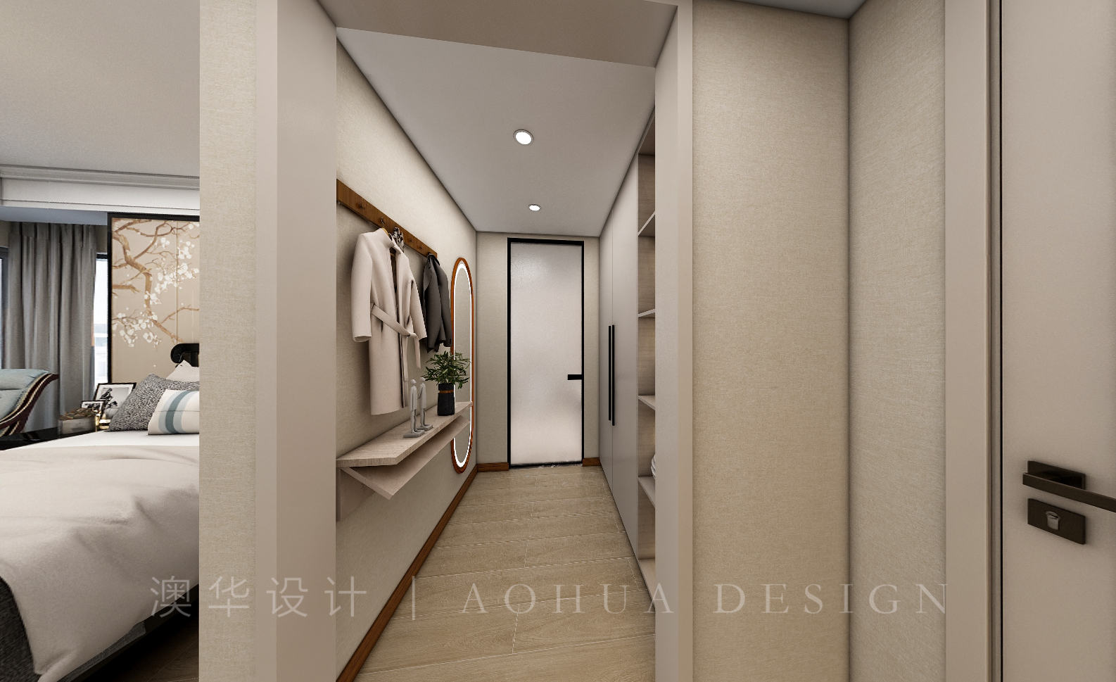 • 衣帽间可作为主卧一部分收纳空间的同时,更能提升主卧的品质与奢华感。