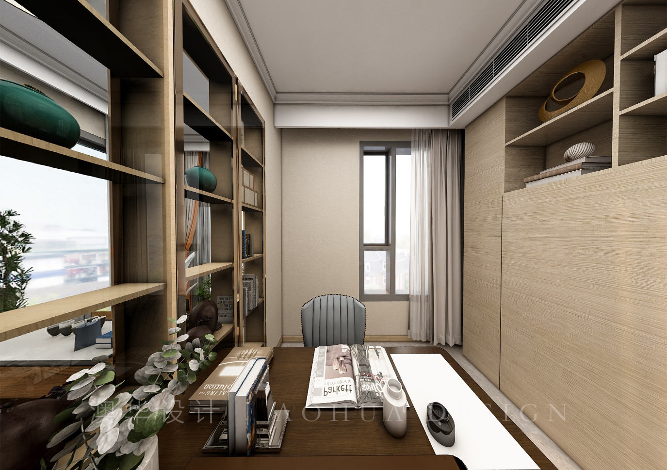 • 书房采用翻板床设计,既能满足办公需求,又能作为客人临时居住空间。