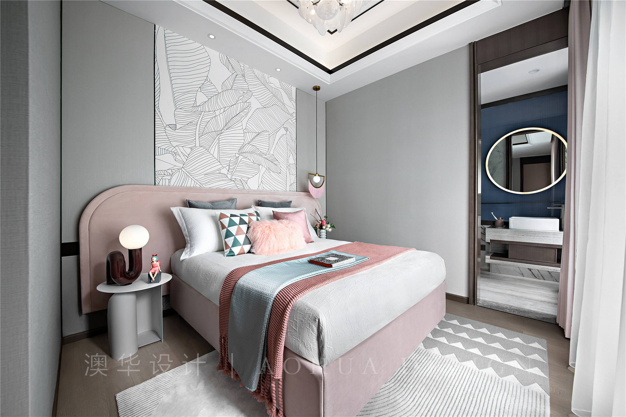 • 背靠素色的黑白线条,柔美简洁,流苏吊灯灵动轻巧,配以软萌内敛的粉色调,甜美也不失俏皮,在东方韵律里融合现代风格线条与设计手法,让空间在格调中透露了出了小女孩儿明媚可爱的气质。